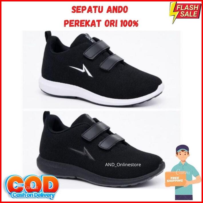 Sepatu Sekolah Anak Laki Laki Perempuan Ando Hitam Putih Dan Hitam Polos Perekat Musim Panas Fashion
