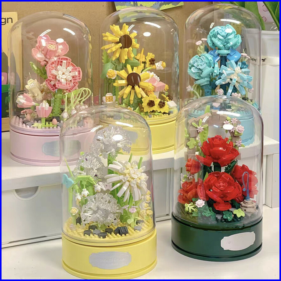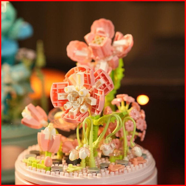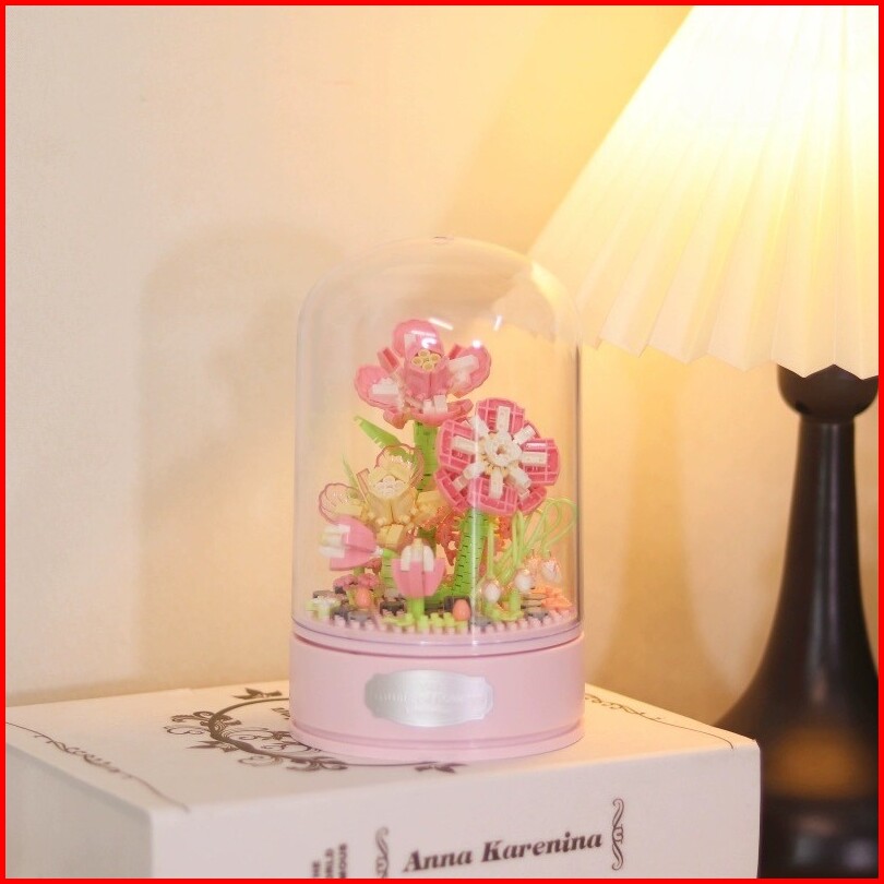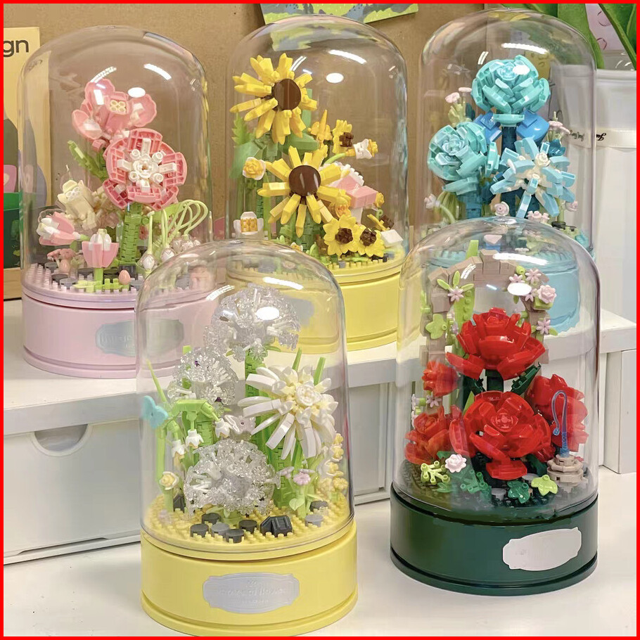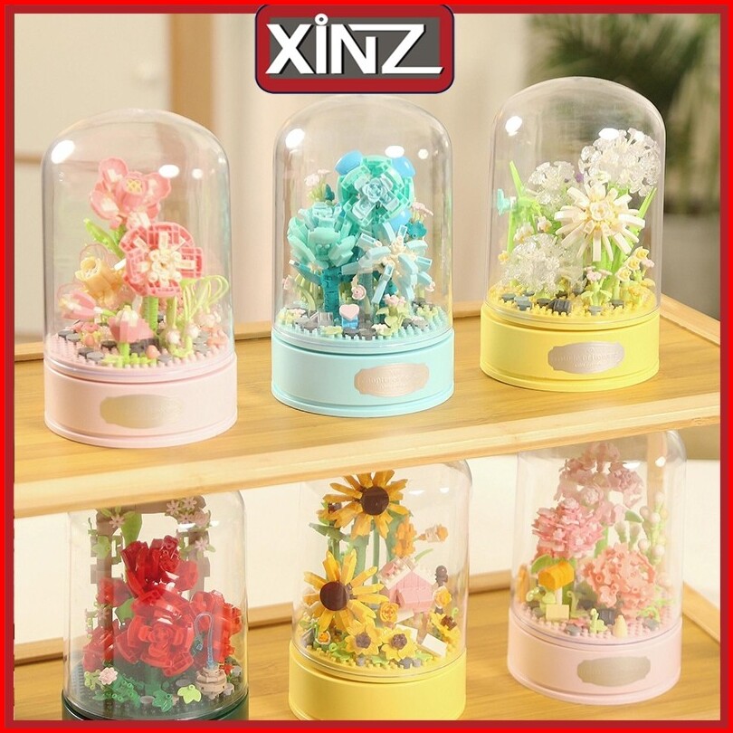Xinz Mainan Block Bunga Musik Kotak Susun Nano Diy Bunga Balok Valentine Musik Bunga Musik Box