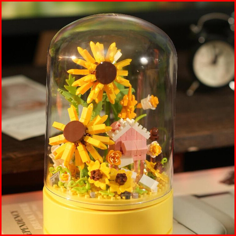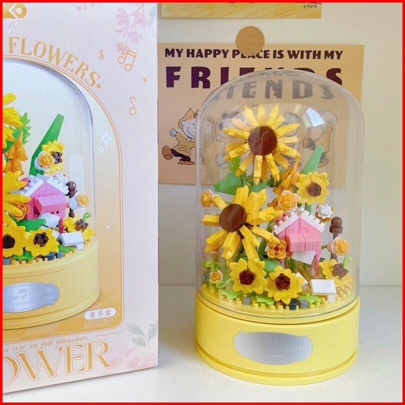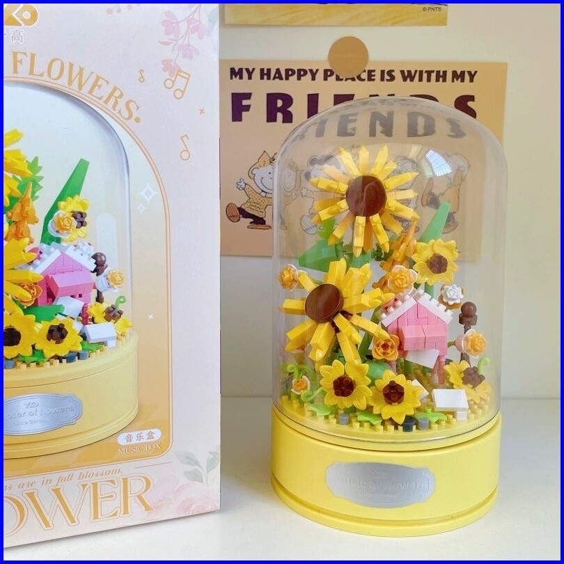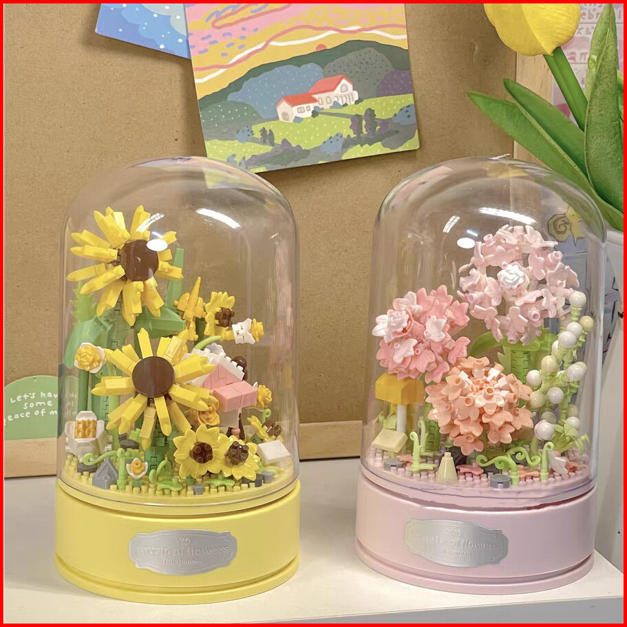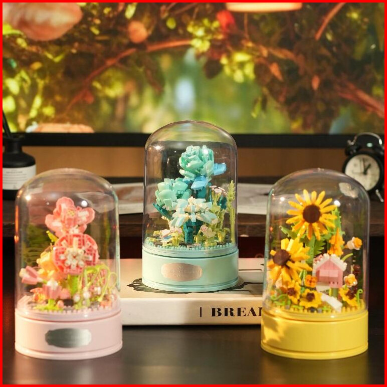 Xinz Mainan Block Bunga Musik Kotak Susun Nano Diy Bunga Balok Valentine Musik Bunga Musik Box
