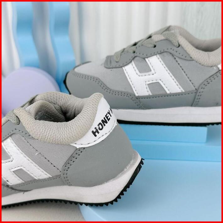 Honeyhope Sepatu Sport Running Anak Laki Laki Dan Perempuan Grey Tali Fashion Anak