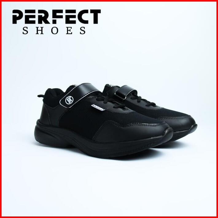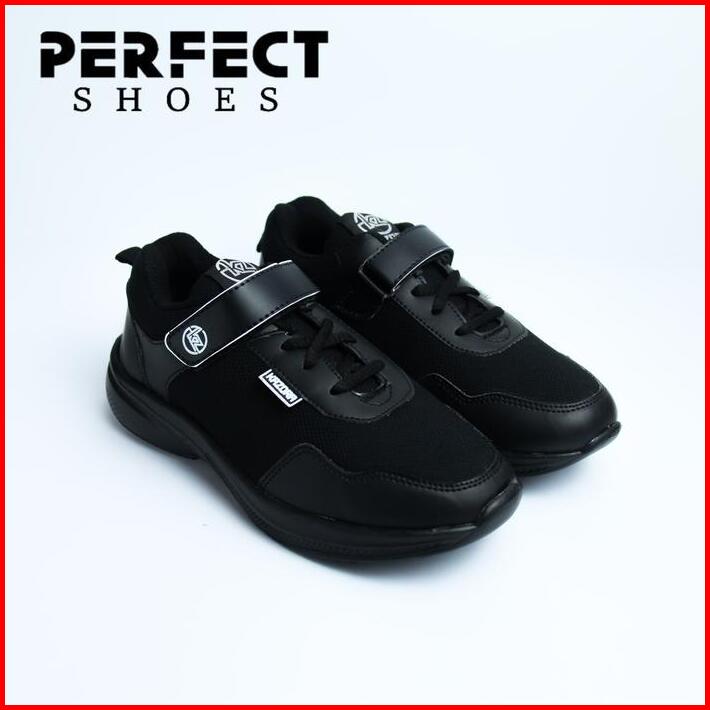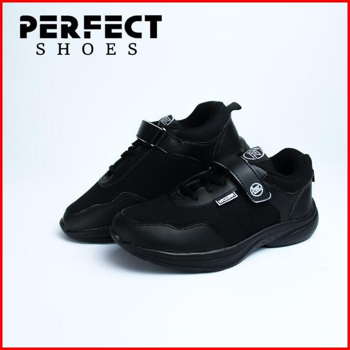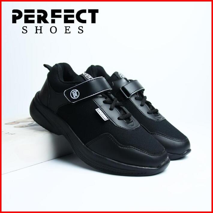 Original Sepatu Sekolah Anak Dan Dewasa Laki Laki Dan Perempuan Full Hitam Velkro Tali Sepatu Perekat Cewek Cowok Berkua