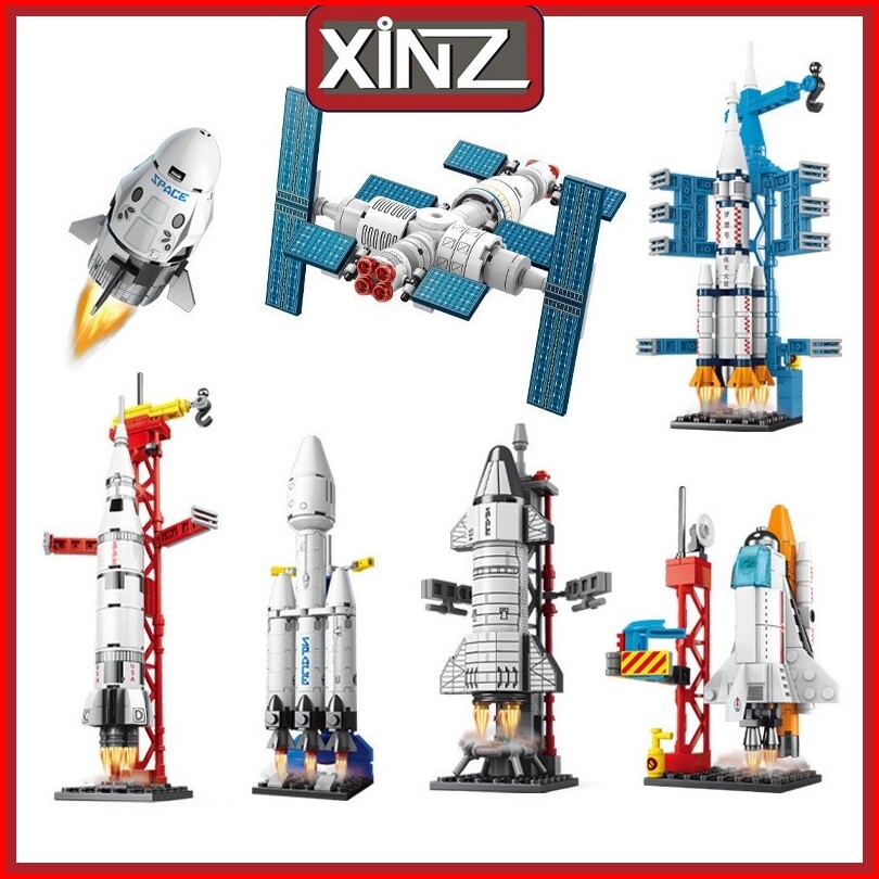 Xinz Mini Roket Space Mainan Balok Blok Nano Building Brick Peluncuran Roket Pesawat Roket Model