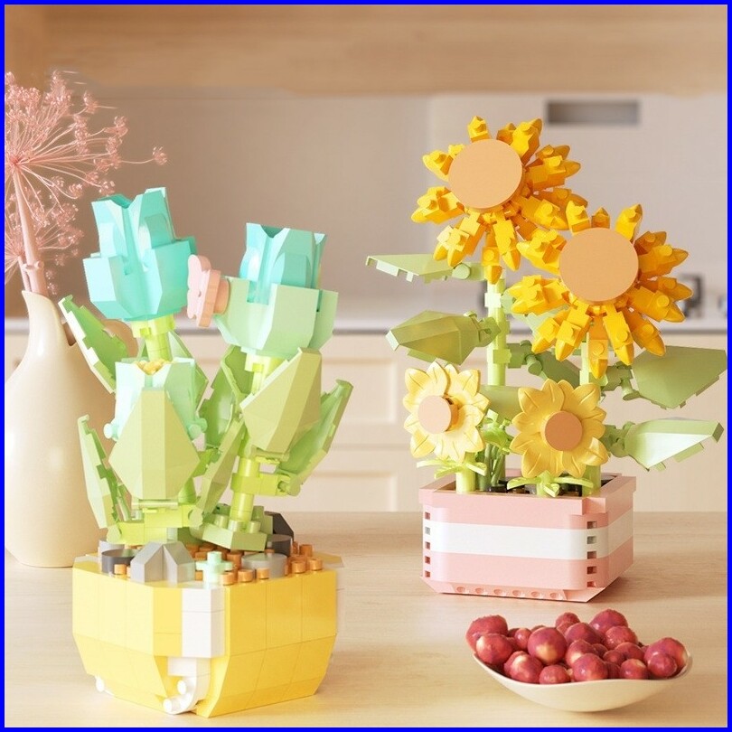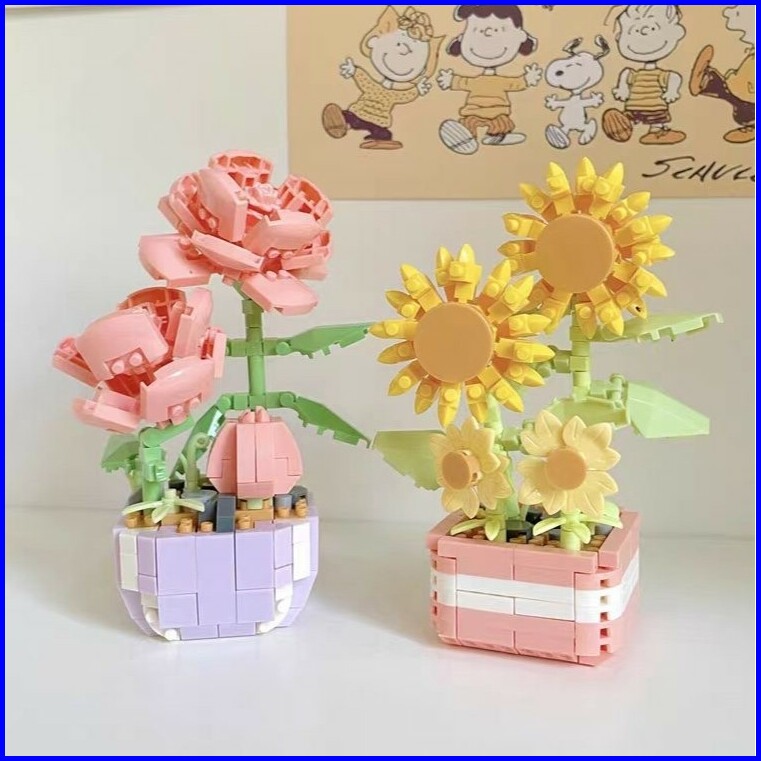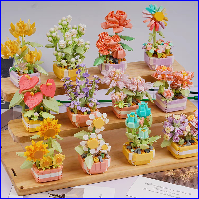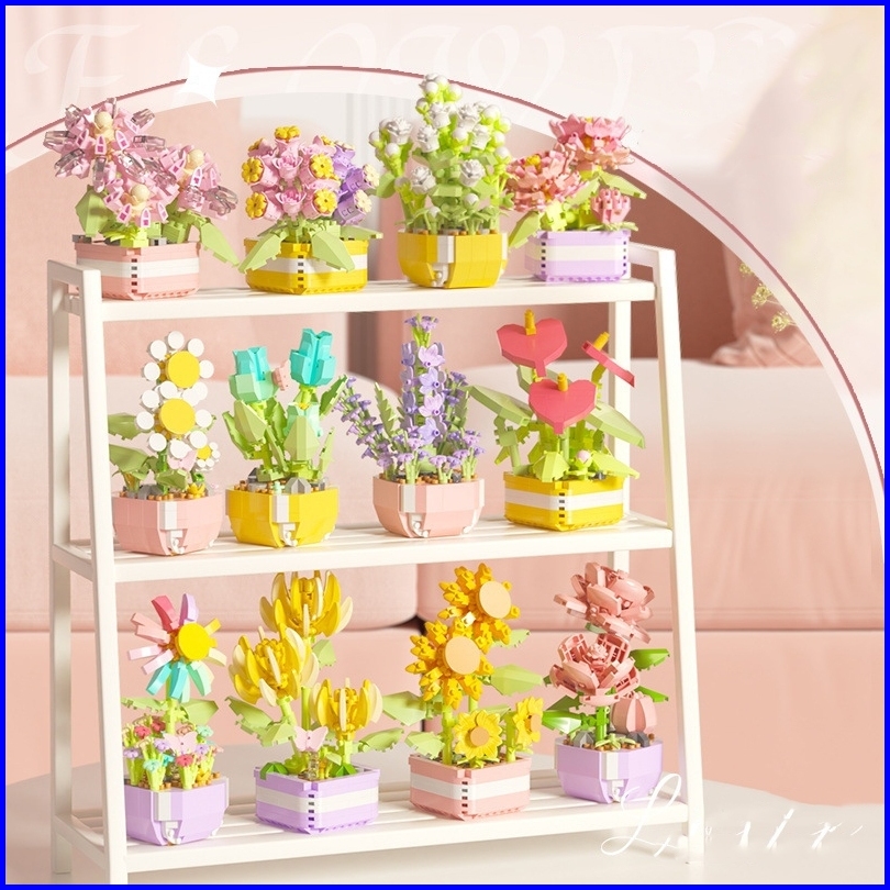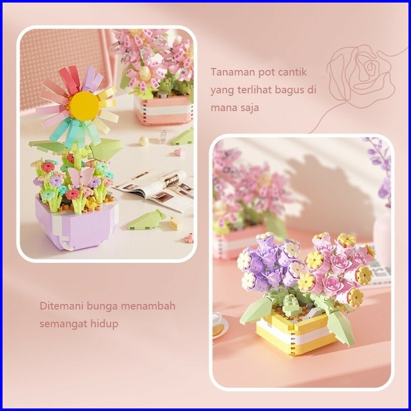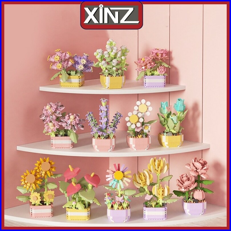 Xinz Brick Block Pot Bunga Mainan Balok Susun Diy Hadiah Ulang Tahun Puzzle Blok Bricks Block Flower
