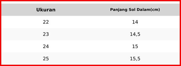 22 (14 CM), 23 (14,5 CM), 24 (15 CM), 25 (15,5 CM)