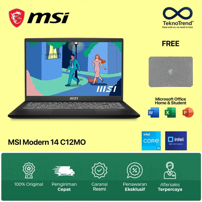DP 0 MSI MODERN 14 C12MO I31215U 8GB 512GB UHD GRAPHICS 14 FHD 512GB BLACK NO BUNDLE