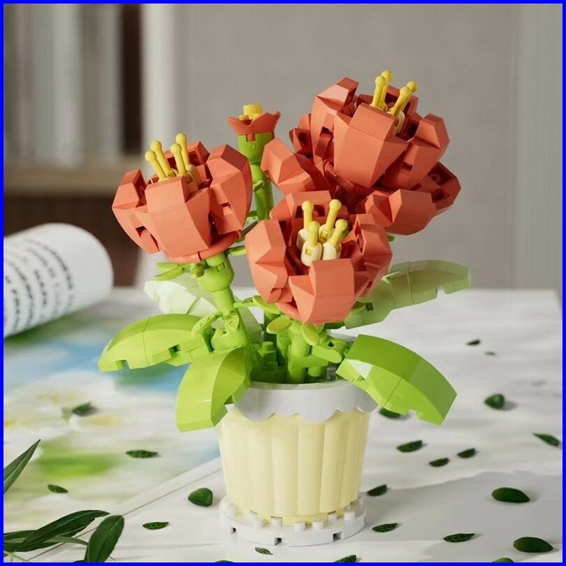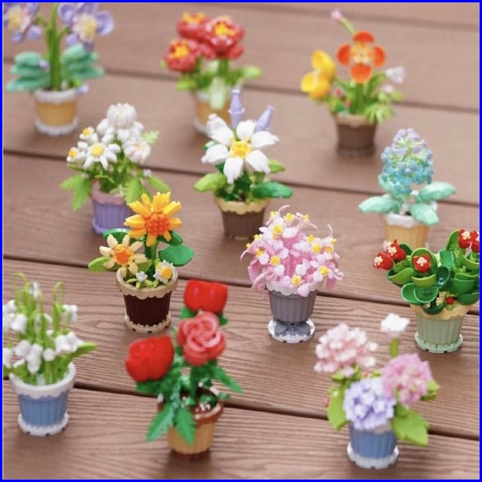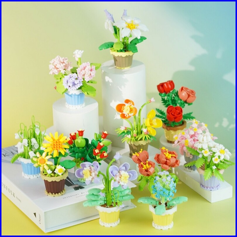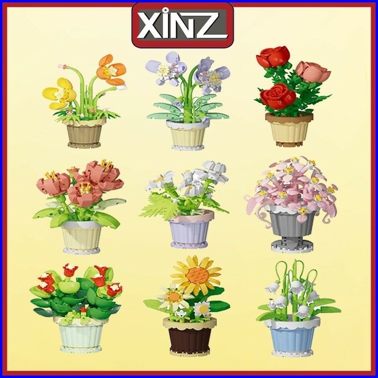 Xinz Balok Bunga Buku Pot Bunga Nano Block Rakitan Bangunan Bricks Buket Bunga Abadi Block Flower