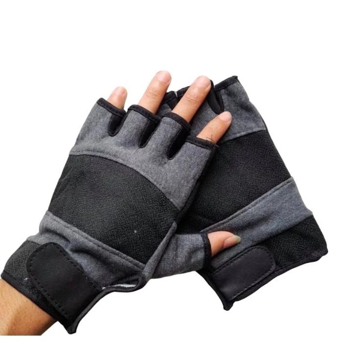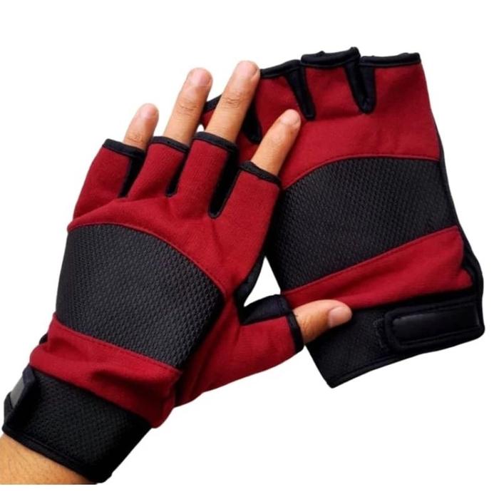 DP 0 SARUNG TANGAN SEPEDA MOTOR GYM FITNESS GLOVE RACING HALF FINGER GLOVES POLOS HITAM