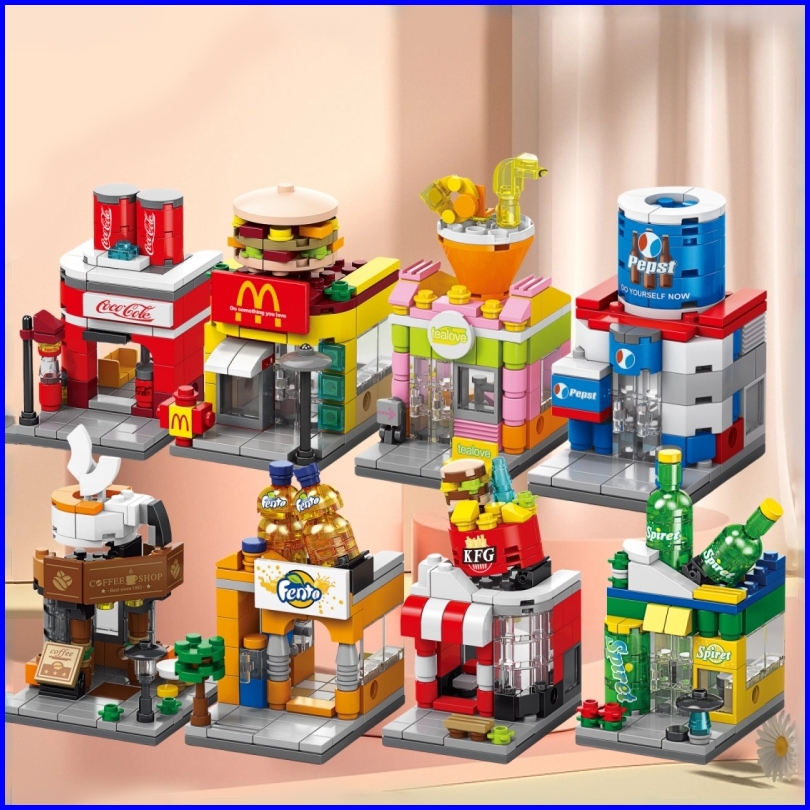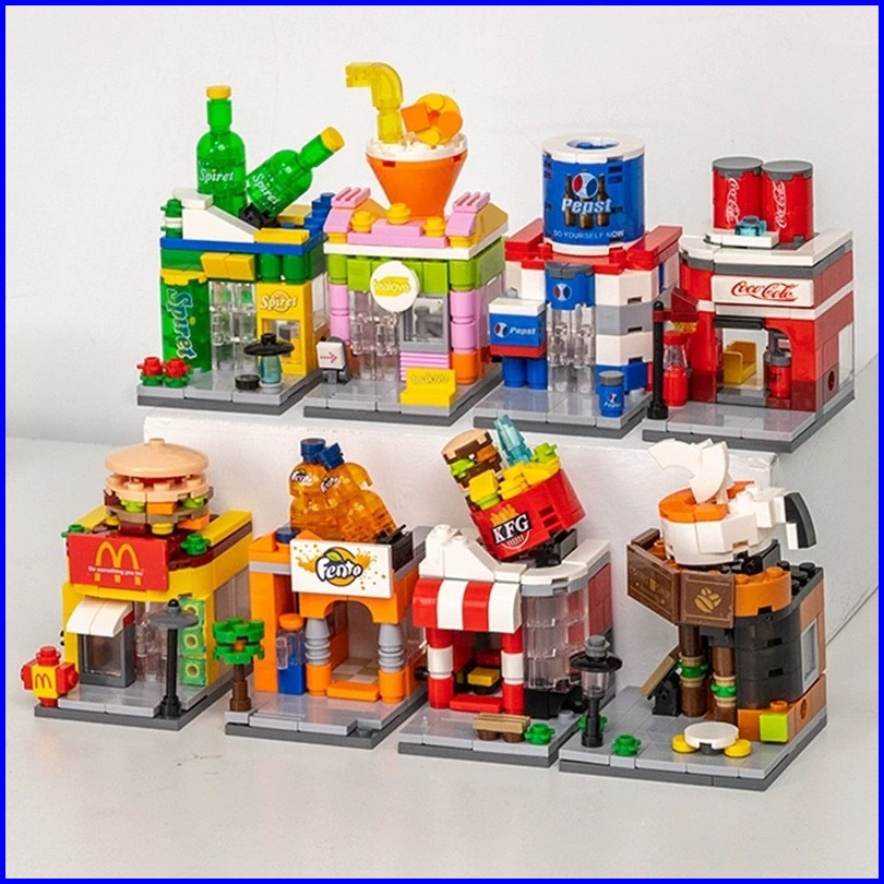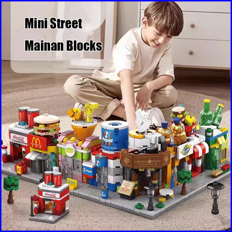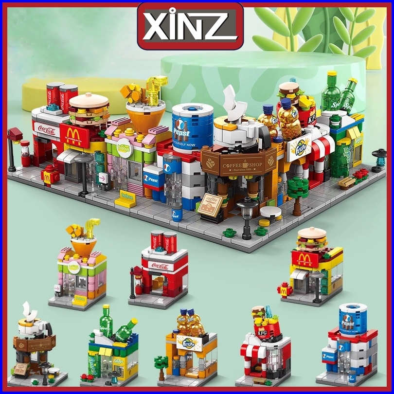 Xinz Block Diy Mini Street Mainan Bangunan Balok Susun Bricks Hadiah Anak Mainan Edukasi
