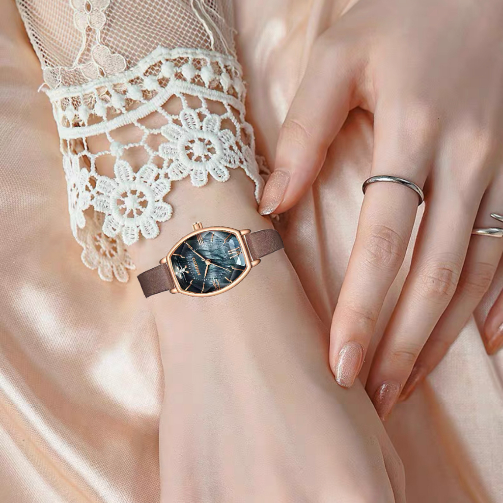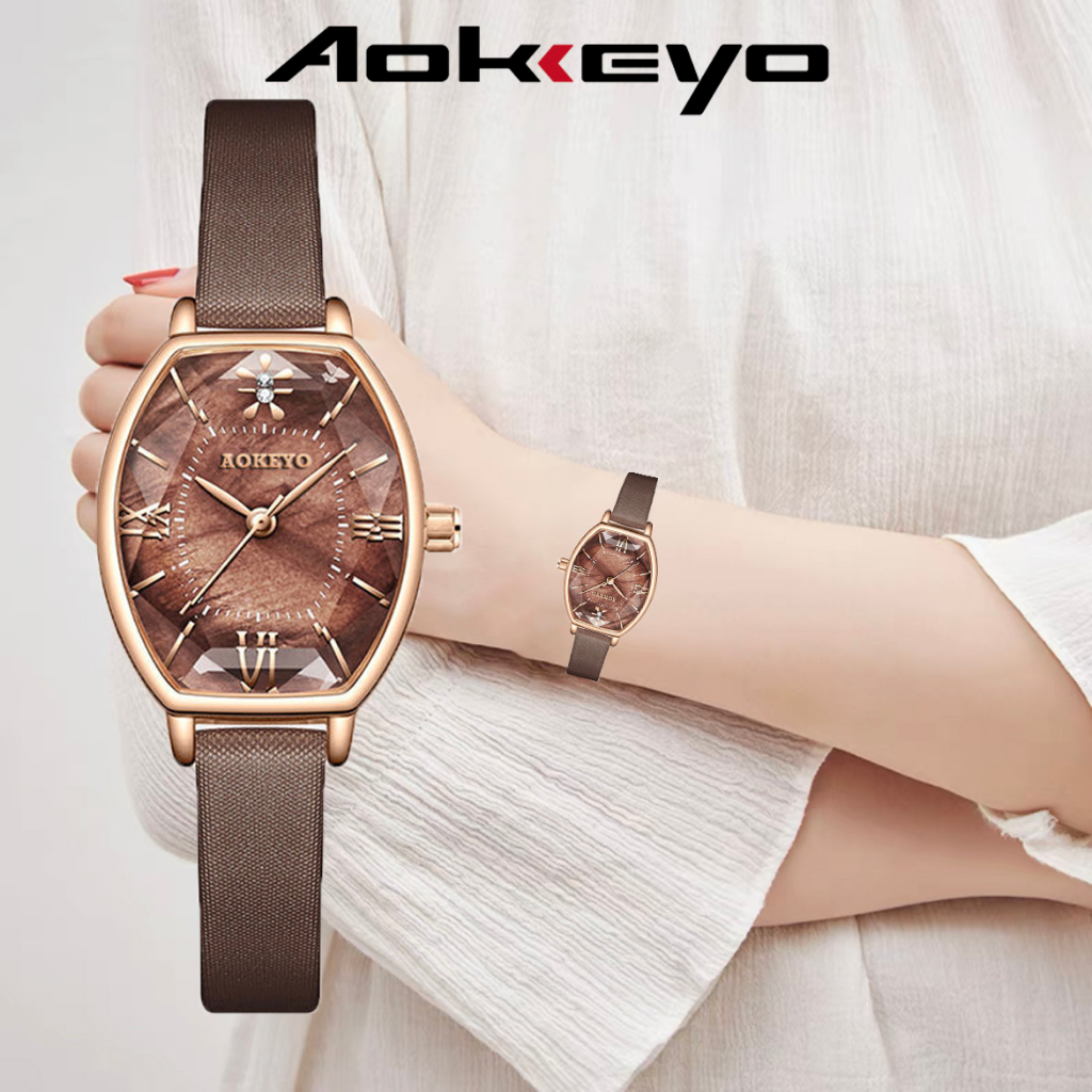 AOKEYO R65 Jam Tangan Wanita Kulit Original Anti Air Tali Kulit Jam Anggun Santai Jam Tangan Cewek(Free BOX+Kartu Garans