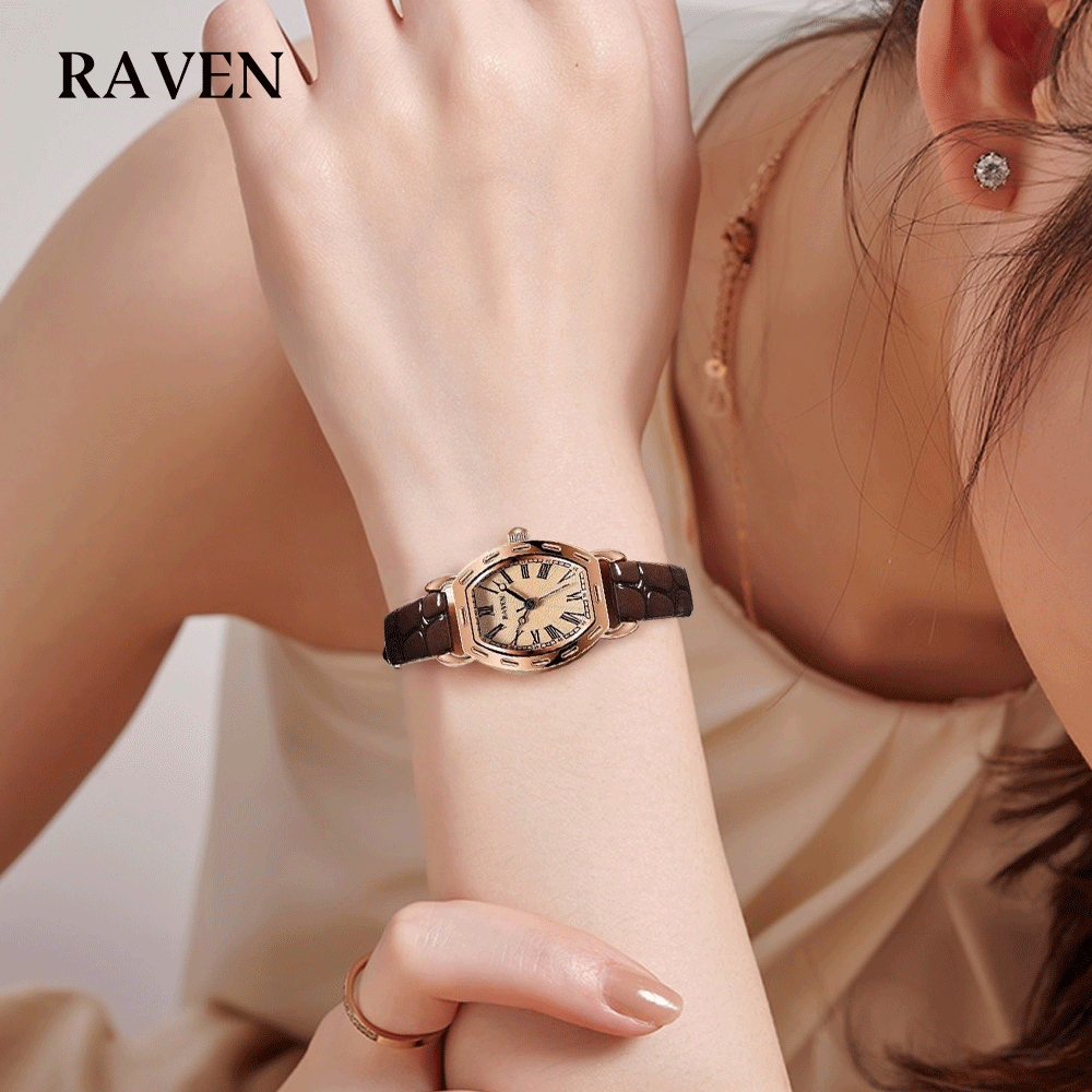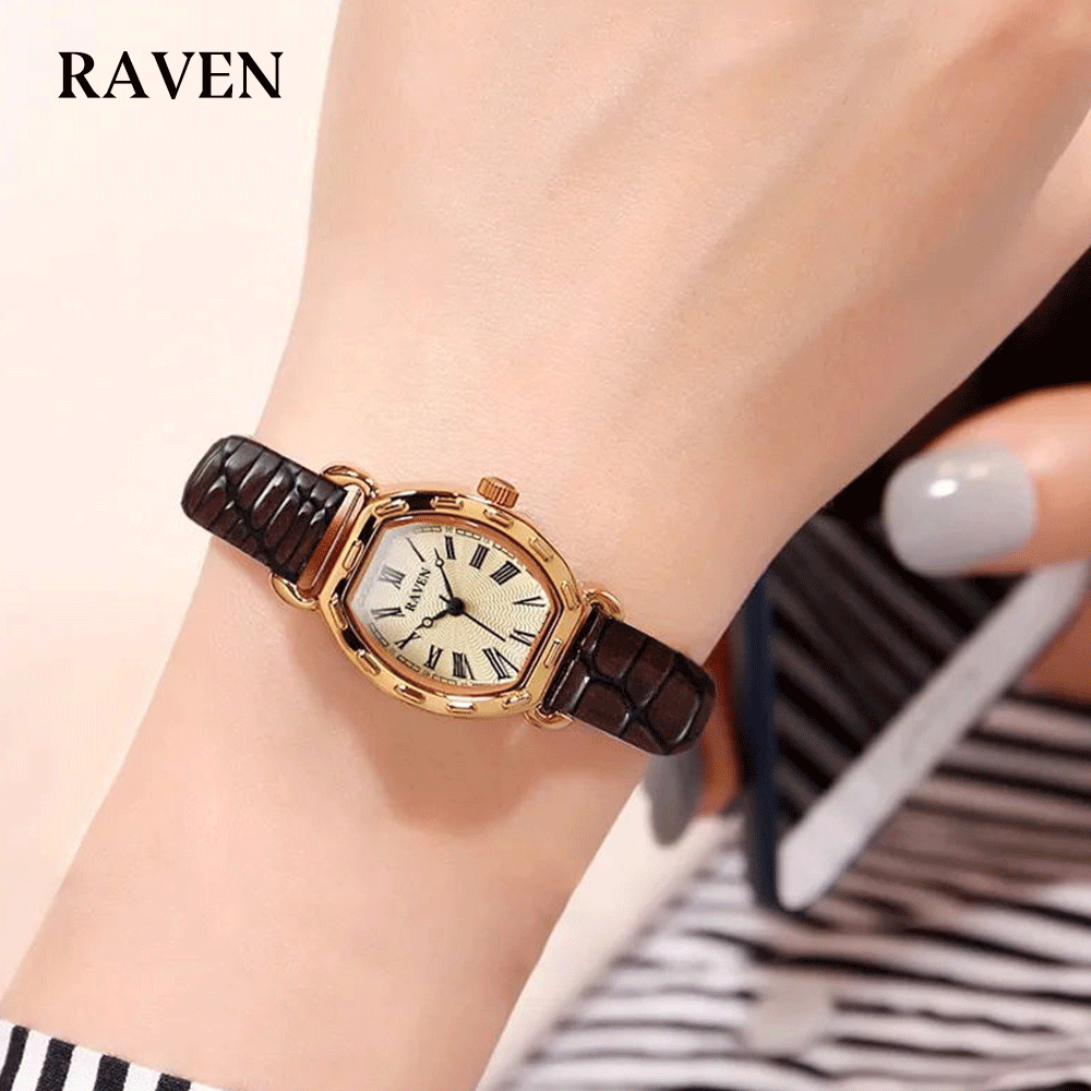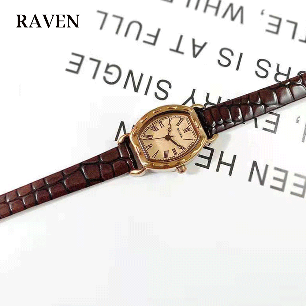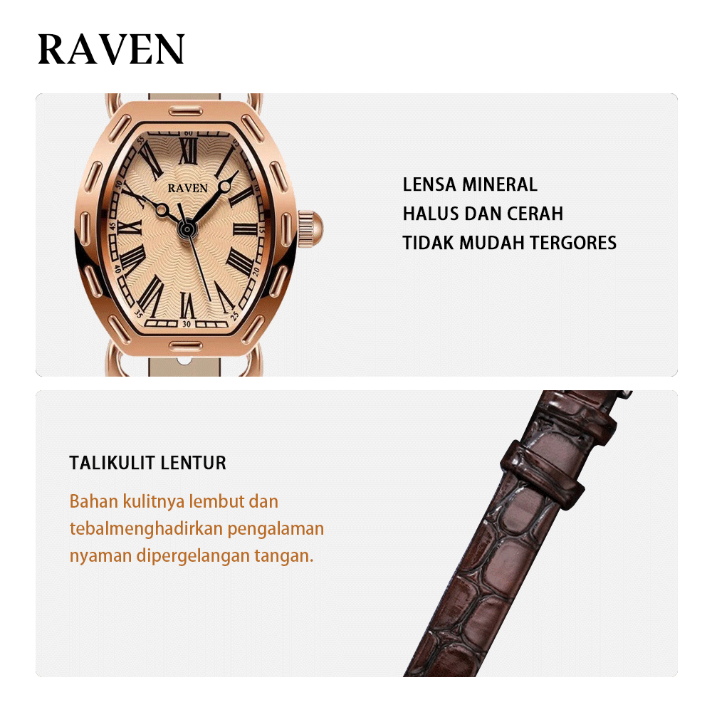 RAVEN Jam Tangan Wanita Anti Air Kuarsa Antik Kasual Tali Kulit Jam Tangan Cewek Original