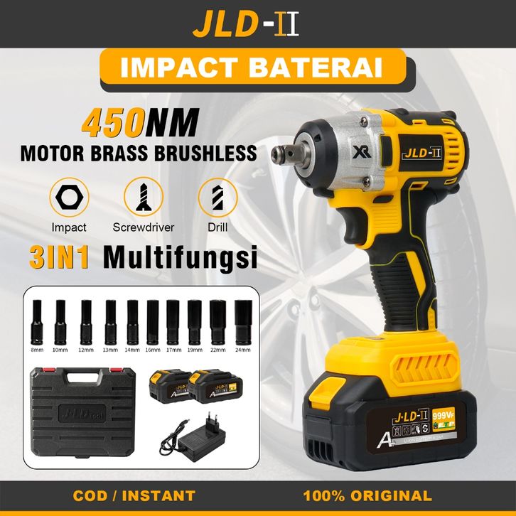 Mesin Bor Listrik JLD-II 450NM Impact Set Wrench Brushless & Cordless 128VF 2baterai JLD Lengkap Murah