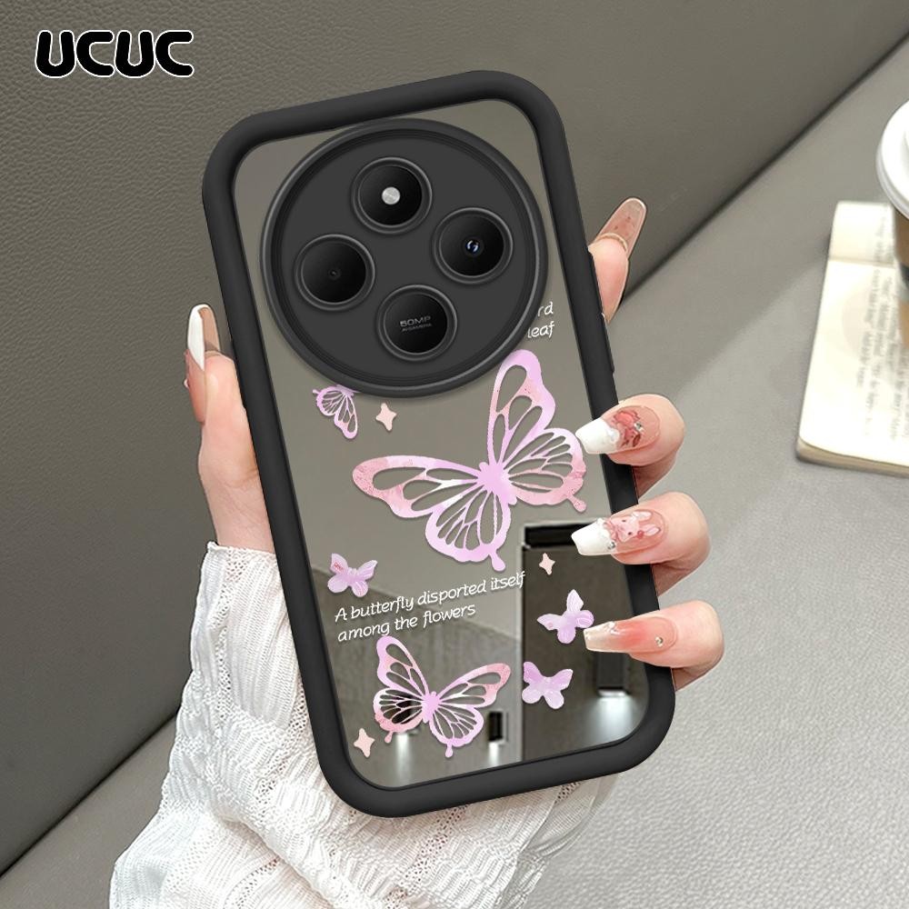 (FLASH SALE)UCUC Redmi 14C Xiaomi Poco C75 Exquisite Butterfly Pattern Soft Silicone Mirror Full Cover Camera Shockproof