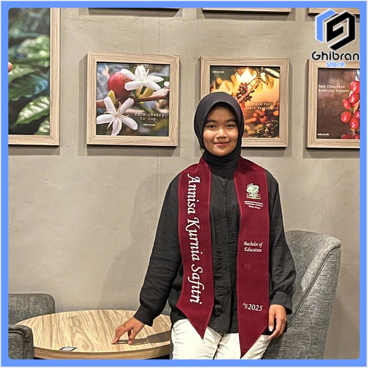 selempang wisuda 1 HARI JADI Selempang Leher Custom Logo Selempang Wisuda Leher Bahan Kain Beludru Premium terlaris