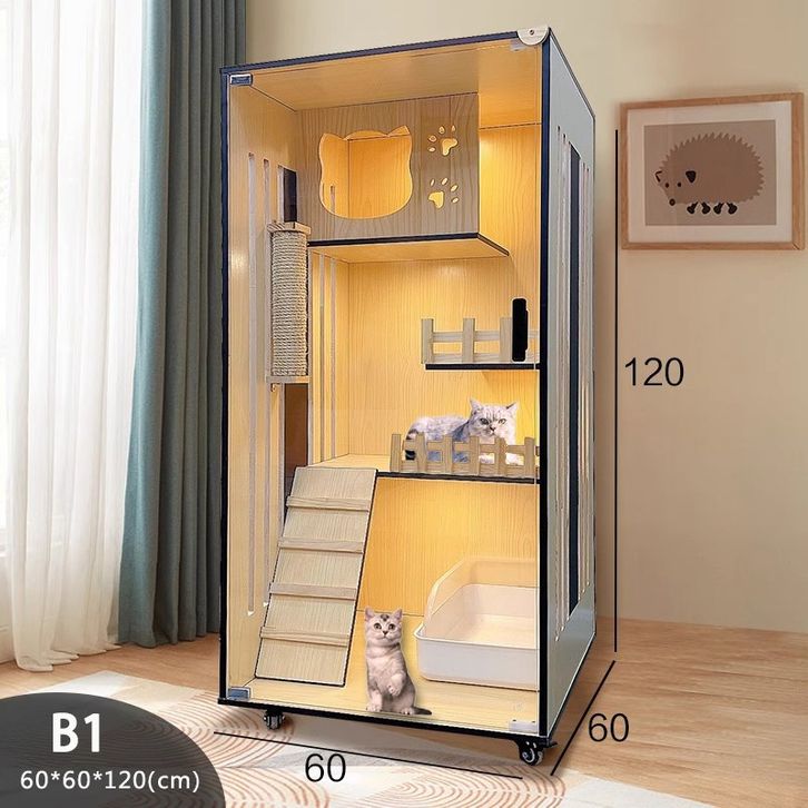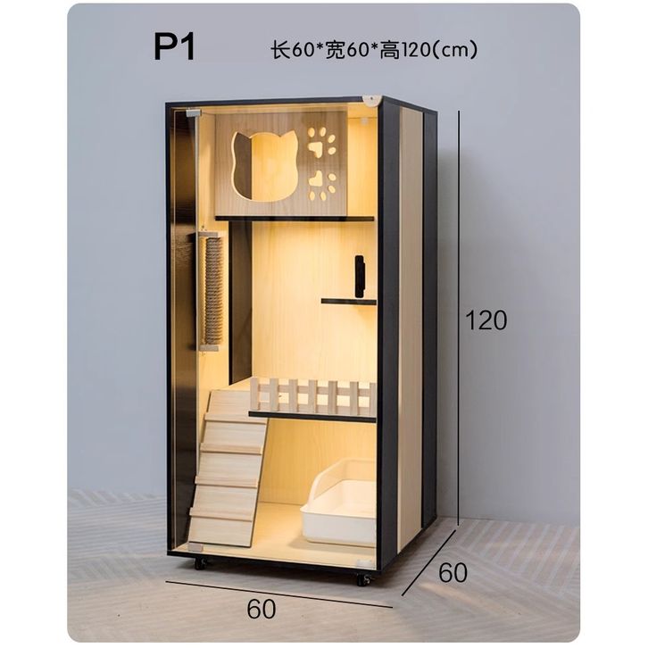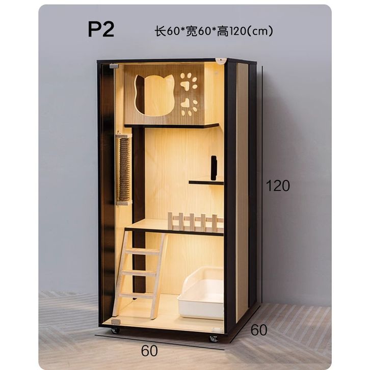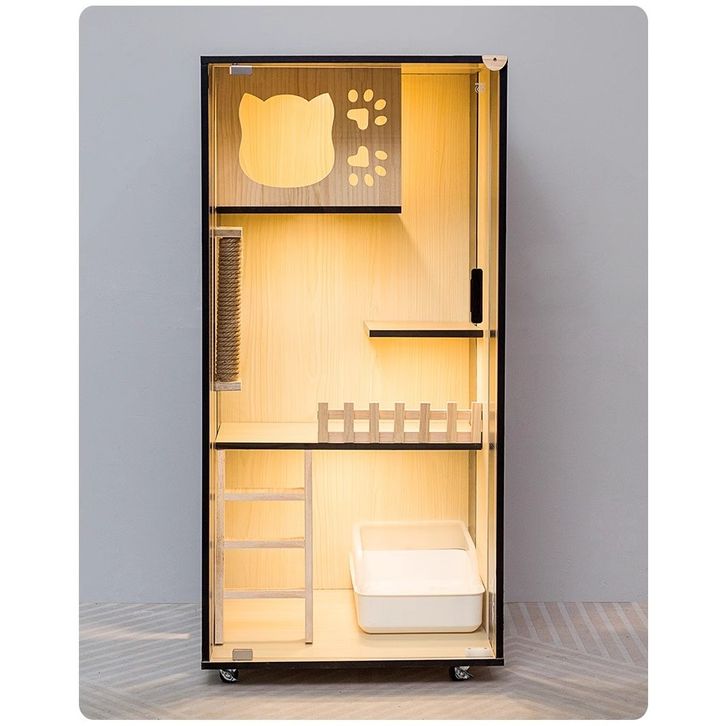 F&G Kucing deluxe cage house Woodcat house Rumah besar untuk kucing mansion Kandang kucing dengan lampu tahan air