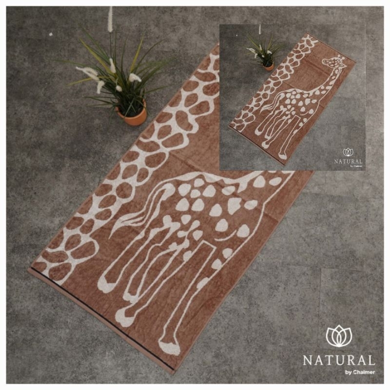 Handuk Mandi Katun Natural By Chalmer UK 70 x 135 cm - Animal Jerapah Premium Series.