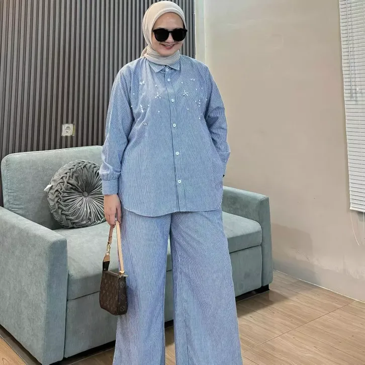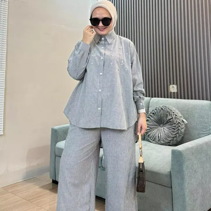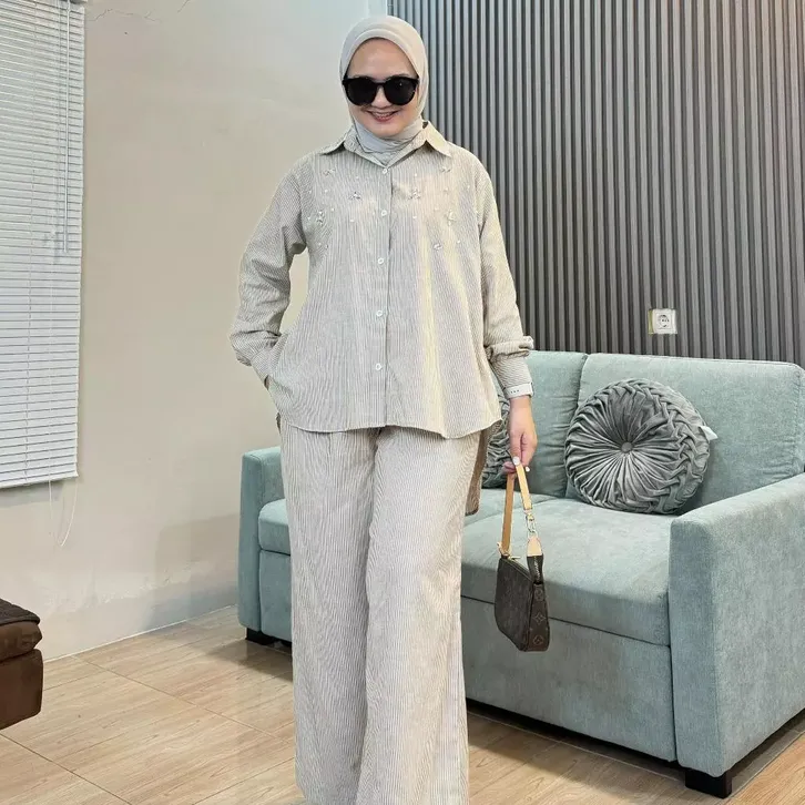 PAMUNGKAS ANAYA SET CELANA KATUN ONESET WANITA ELEGAN DAN MEWAH