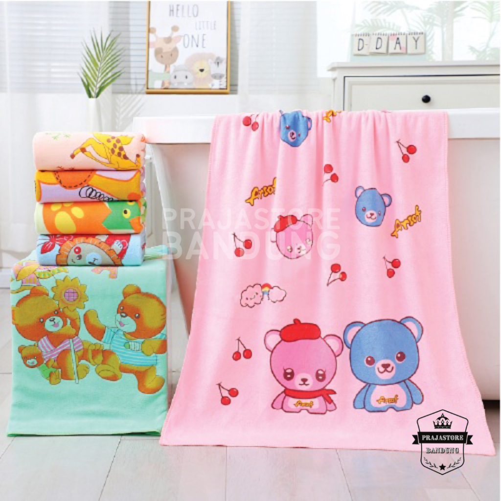 Handuk Mandi Microfiber 60cmx120cm Anduk Anak Baby Motif Warna Tebal Dan Lembut
