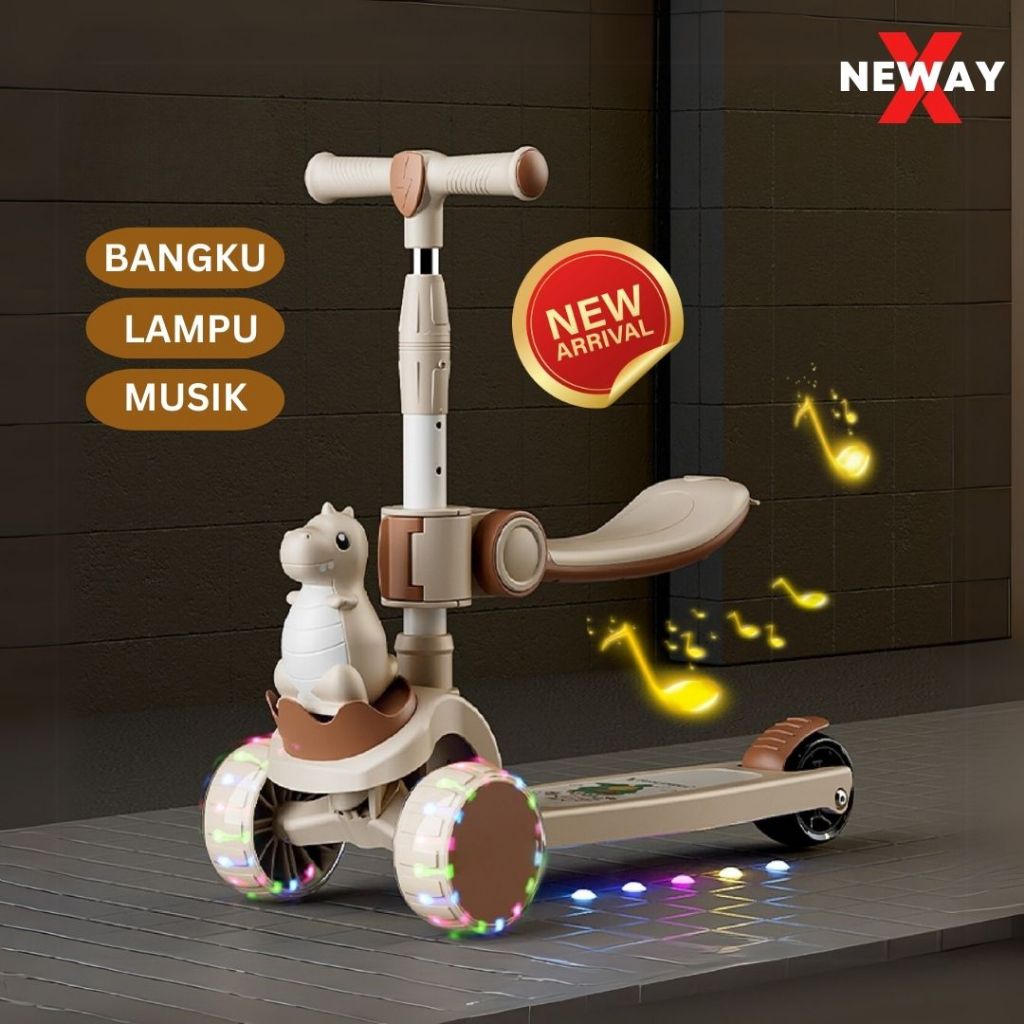 Skuter Anak Karakter Capybara Lucu 2in1 Bisa Duduk Lipat Roda Tiga Ada Lampu Musik