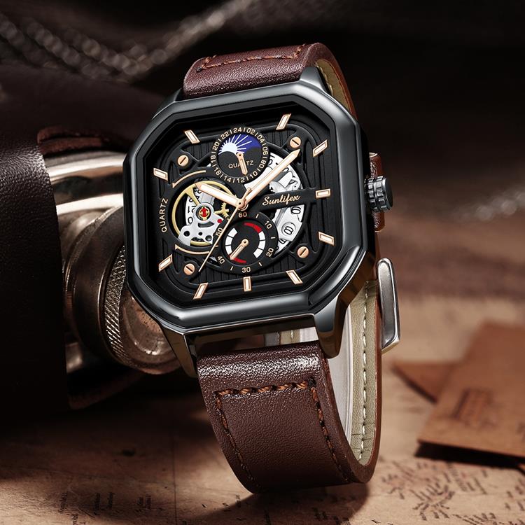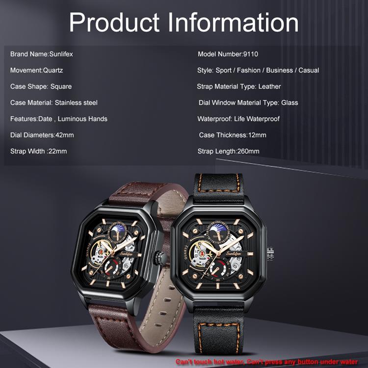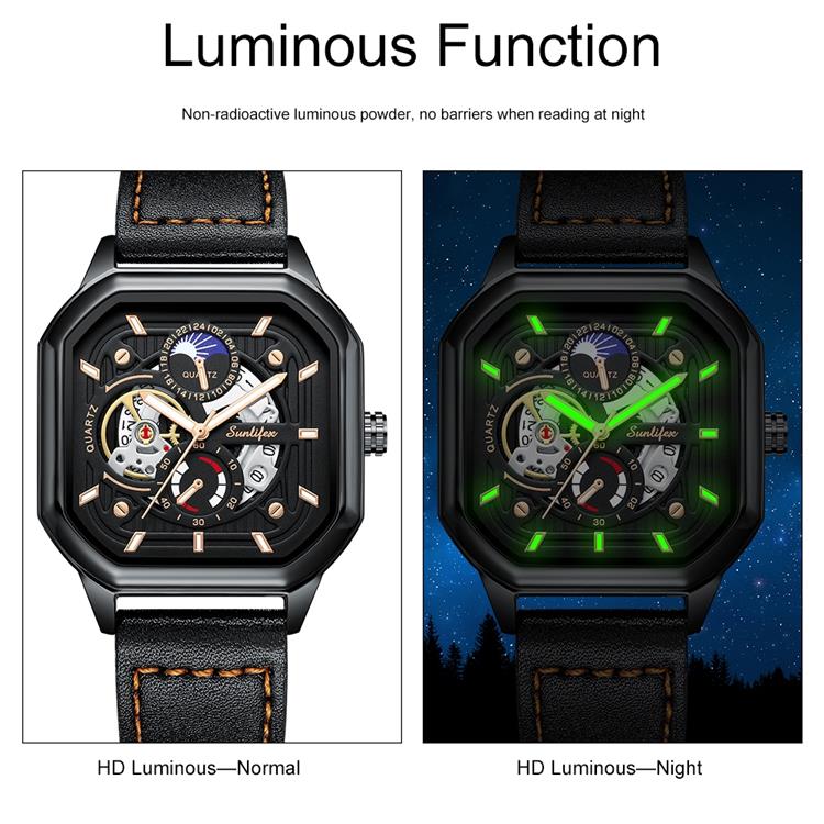 [Mall] Sunlifex Jam Tangan Pria 9110 Kalender Bercahaya Olahraga Kasual Tali Kulit Jam Tangan Cowok