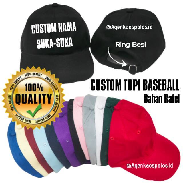 Topi CUSTOM Sablon BASEBALL BAHAN RAFEL Sablon Nama Tulisan Desain Bebas Suka Suka