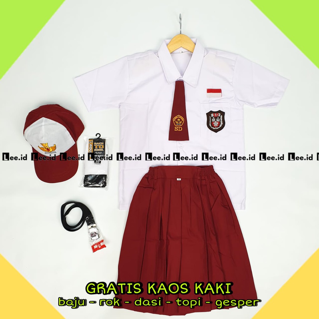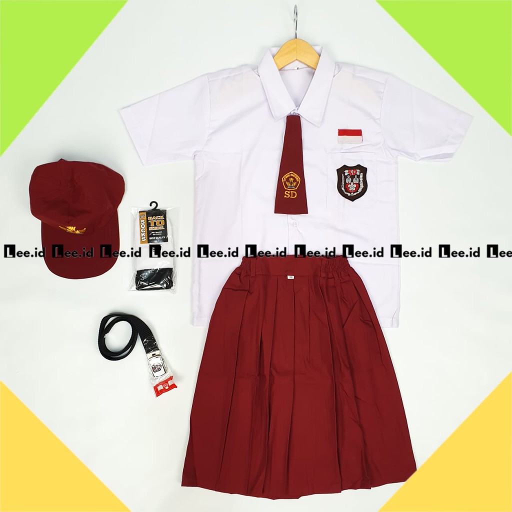 Lee Setelan Super Lengkap Seragam Sekolah SD Merah Putih Pendek Perempuan Kelas 1-6 SD