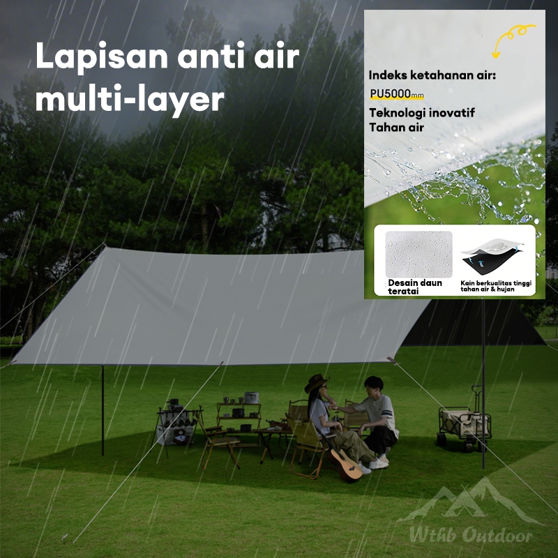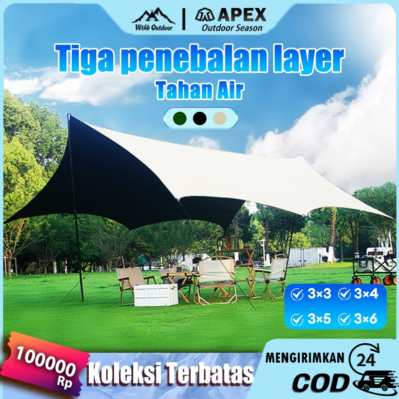 Waterproof Kain peneduh 3x3/3x4/3x5/3x6m Outdoor Atap Tenda 210T dicat perak Tenda Terpal camping Mancing Bushcraft