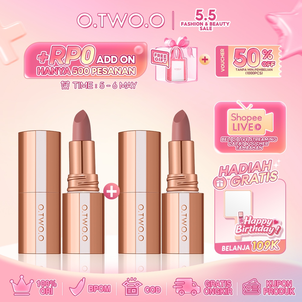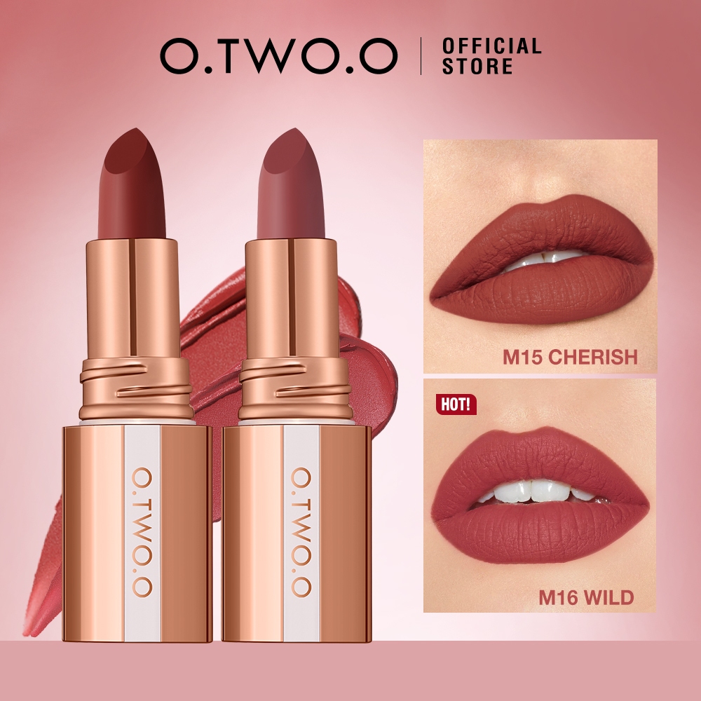 LIPSTICK O TWO O 2PCS Matte Lipstick Misty Kiss Lock Color Silky 24H Long Lasting Lip Makeup