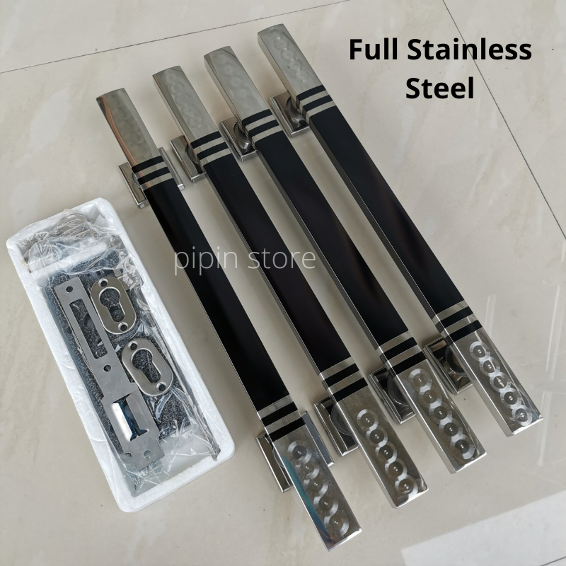Paket Handle Pintu Rumah 45cm Dan 33cm 1 Set Body Kunci Pelor Murah Minimalis Tarikan Pintu Gagang Pintu Rumah Stainless