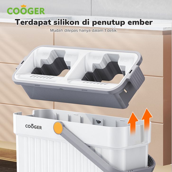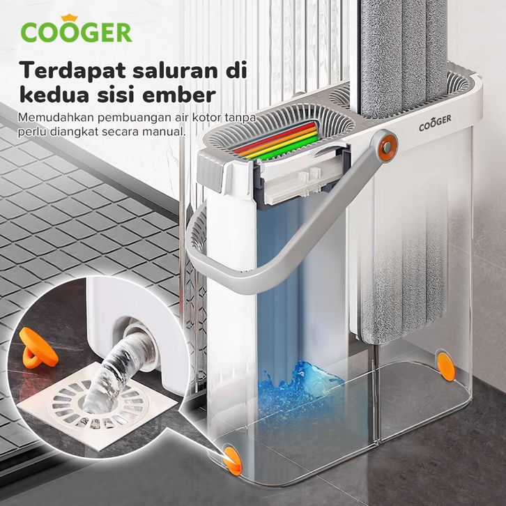 COOGER Alat Pel Lantai Dengan Ember Sekat Pel Lantai Dual Ember Sekat Dual Bucket Mop Pel Dengan Ember Pemisah Mencuci D
