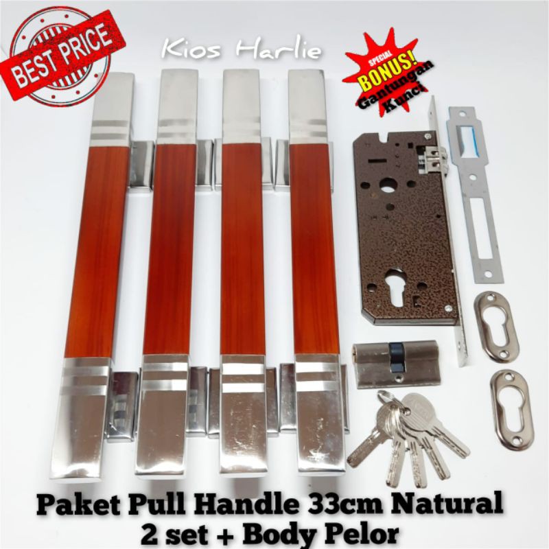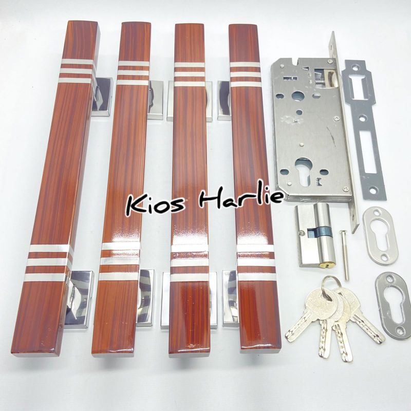 Handle pintu rumah, kunci pintu rumah 2 set + body pelor, natural