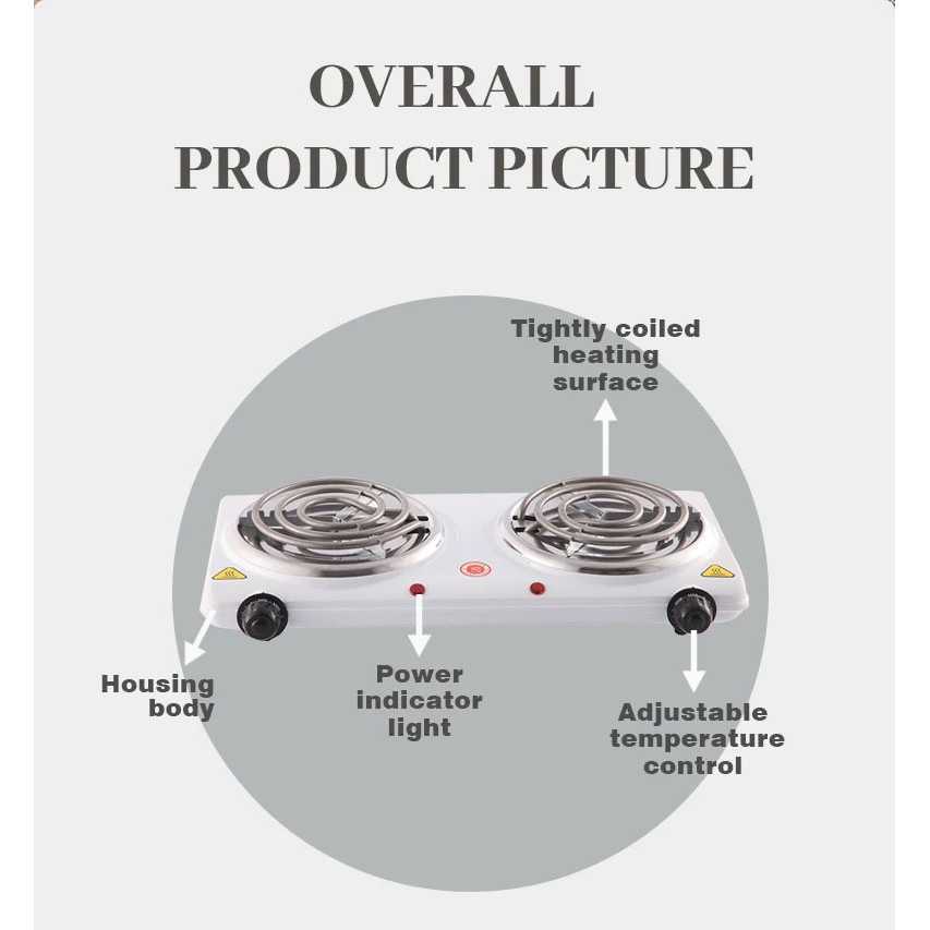 Kompor Listrik 2 tungku hemat listrik serbaguna portable 2000W Heating Co il THP 5703
