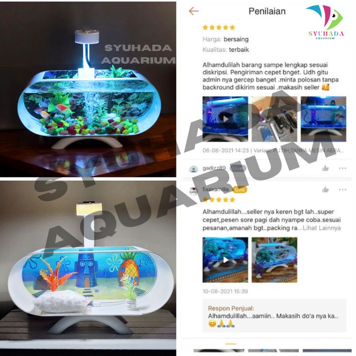 1 SET AQUARIUM MINI KACA AKRILIK LENGKAP DENGAN MESIN POMPA AERATOR TINGGAL PAKAI (M02)