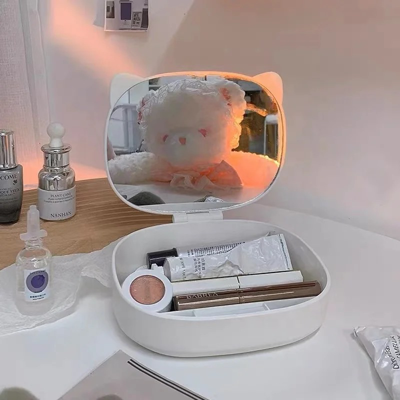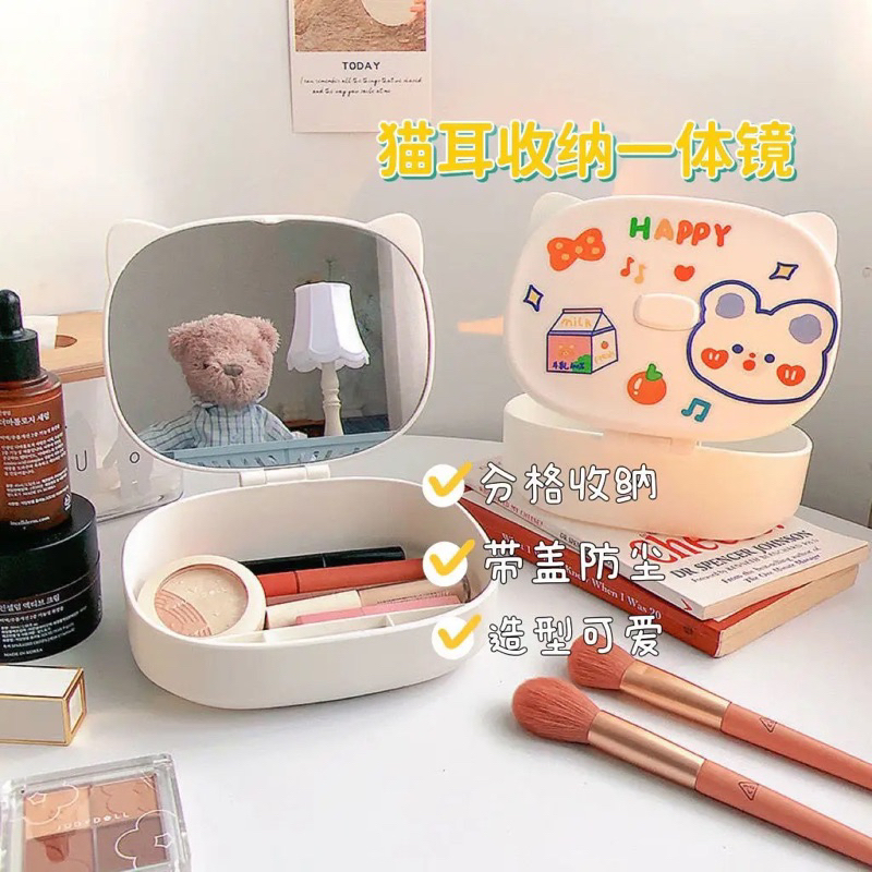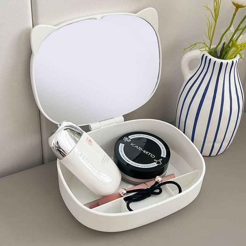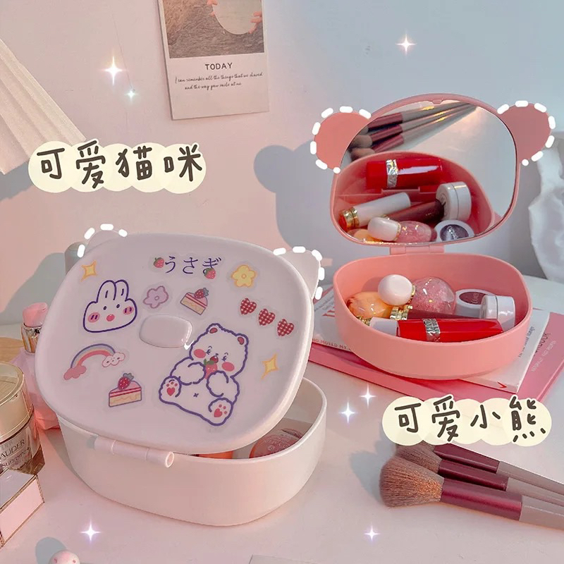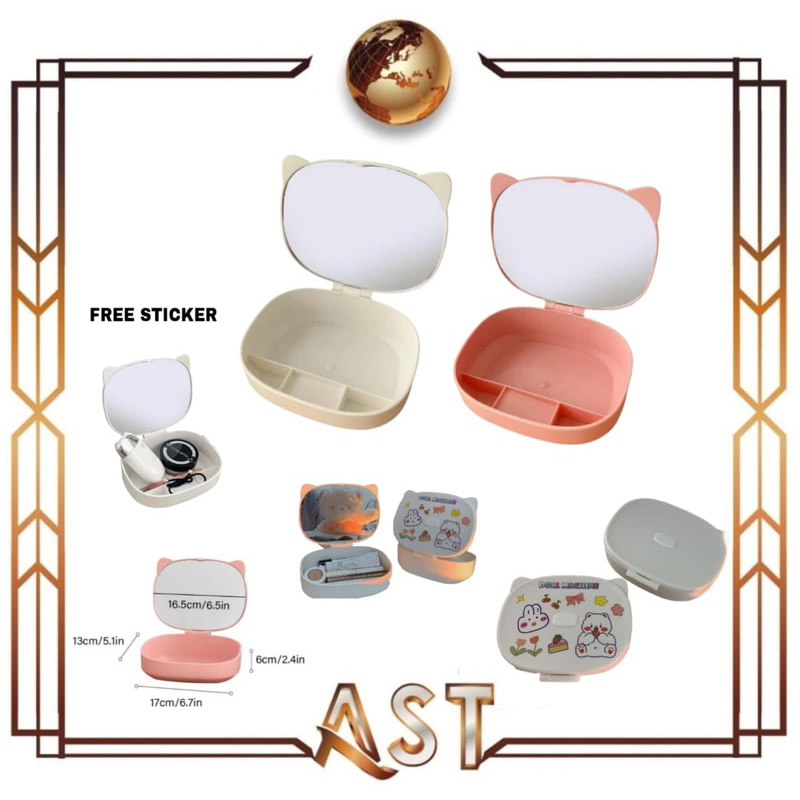 Rak Kosmetik + Ka Cermin Kotak Lipat Makeup tempat Skincare Make up Stiker Travel Bag