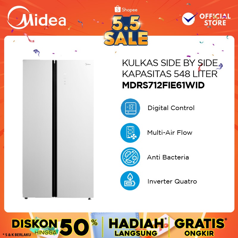 Midea Kulkas Side by Side / Kulkas 2 Pintu Kapasitas 548L - Model MDRS712FIE61WID