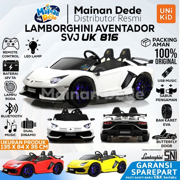 Mainan Mobil Aki Anak Lamborghini Aventador SVJ Lisensi UK 816 ban karet unikid / NKYZ 034C