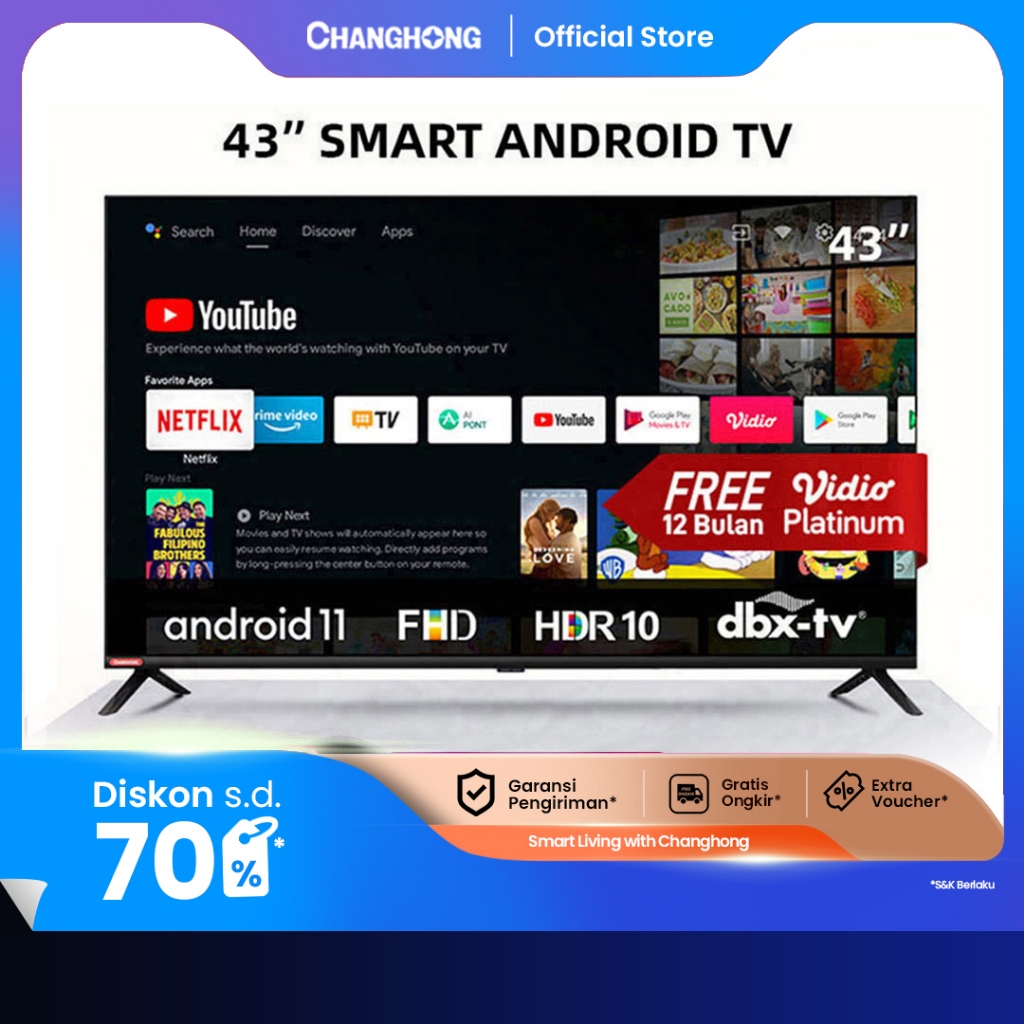Changhong 43 Inch Newest Android 11 Frameless Smart TV Digital LED TV FHD -Netflix-Youtube-Google Playstore (L43G7N)