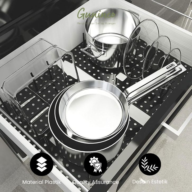 Adjustable Rak Piring Kolong Laci Kitchen Set Serbaguna Drawer Organizer Piring Mangkuk Gelas Multifungsi 12 Sekat