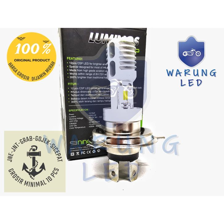 Lampu utama led motor 9NINE LUMINOS H4 HS1 AC DC LED CSP Warna Putih