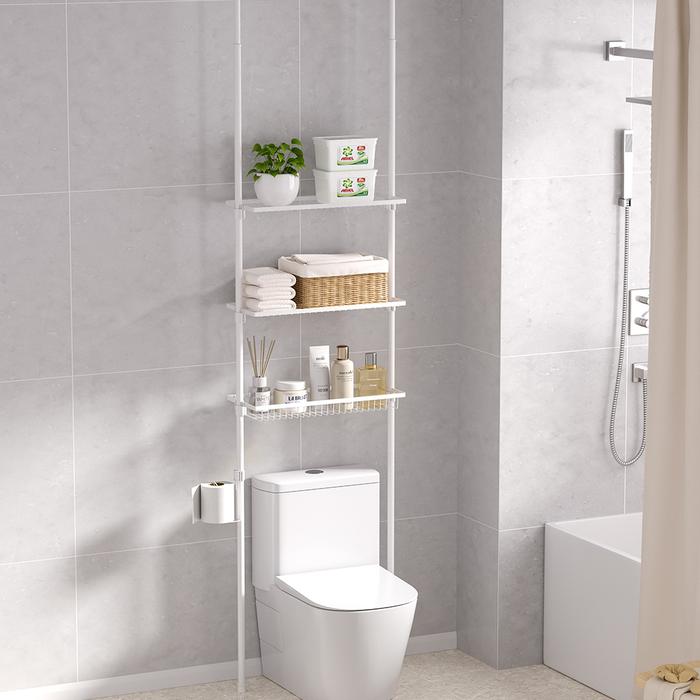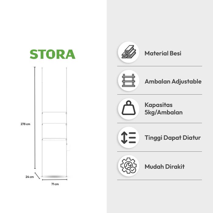Stora Rak Toilet Telescopic - Putih Organizer Serbaguna Rak Sabun Shampoo Tempat Peralatan Mandi Bathroom Wall Shelves