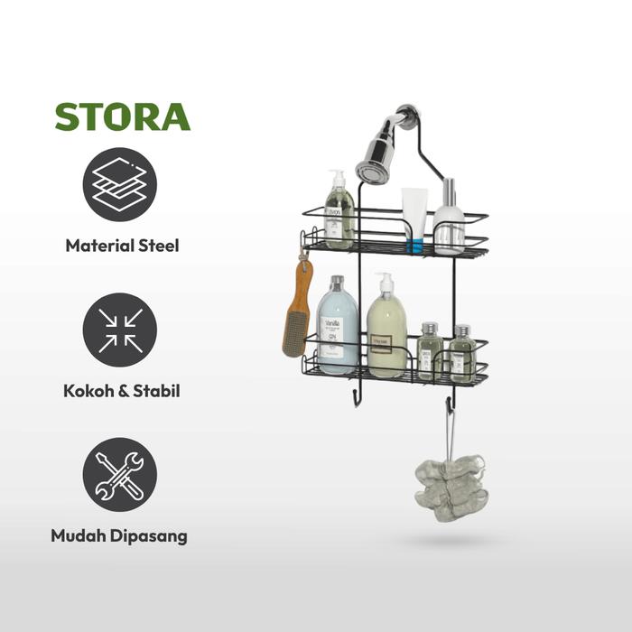 Stora Rak Gantung Kamar Mandi 2 Tingkat Wk830583 - Hitam Shower Wall Shelf Organizer Rak Tembok Serbaguna