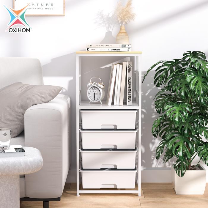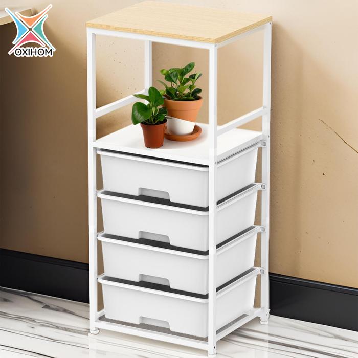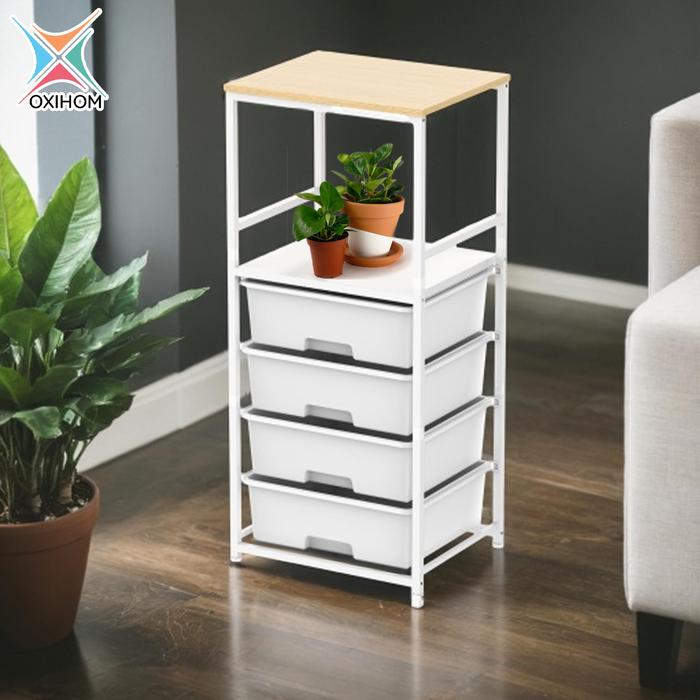 Oxihom Lemari Susun Plastik Nakas Kamar Rak Laci Susun Plastik Lemari Pakaian Besi Kayu Furniture