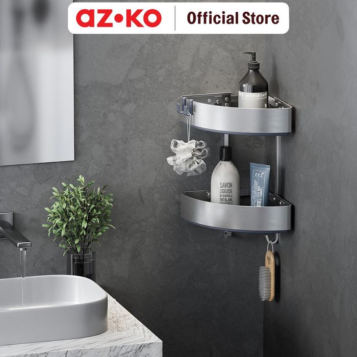 Stora Rak Dinding Kamar Mandi 2 Tingkat Aluminium Wk820433 Shower Wall Shelf Organizer Rak Tembok Serbaguna