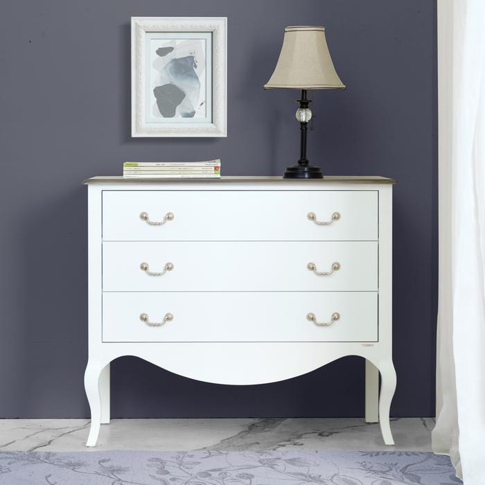 IFURNHOLIC Paris 3 Drawers | Lemari Laci Kayu Klasik 3 Susun | Lemari Pakaian Laci Serbaguna | Buffet TV Putih |