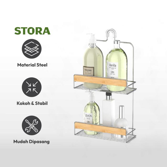 Stora Rak Gantung Kamar Mandi 2 Tingkat Chrome Wk820369R Shower Wall Shelf Organizer Rak Tembok Serbaguna