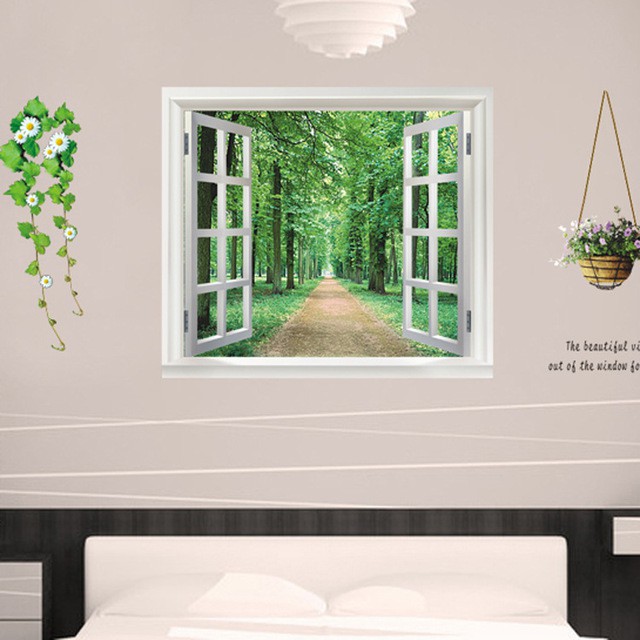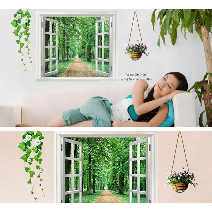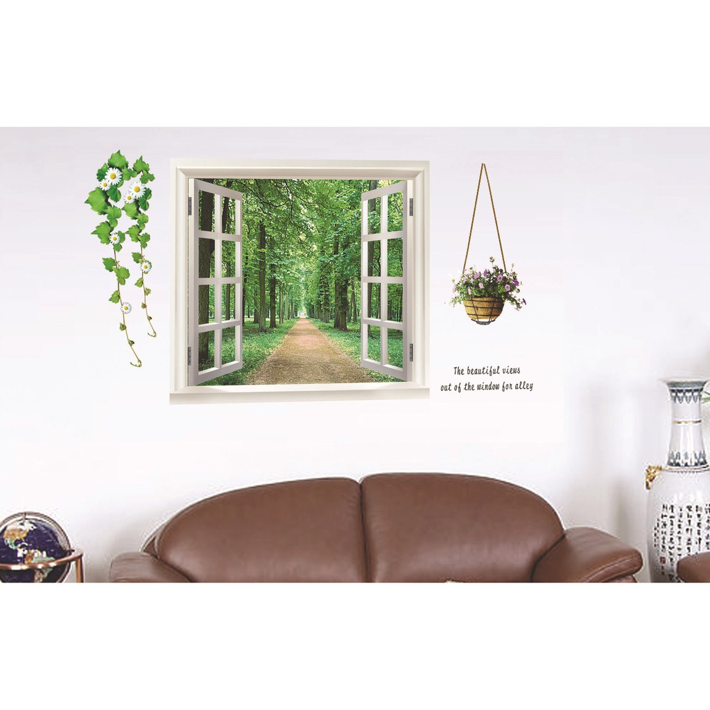 RELIZA WALL STICKER JENDELA POHON HIJAU HUTAN WINDOW GREEN TREE FOREST STIKER DINDING AY823