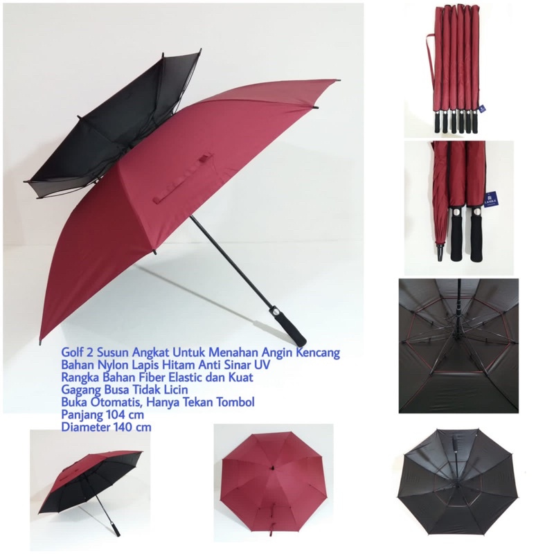 Payung Golf Susun Angkat Besar Jumbo Lapis Hitam Anti UV Lasika