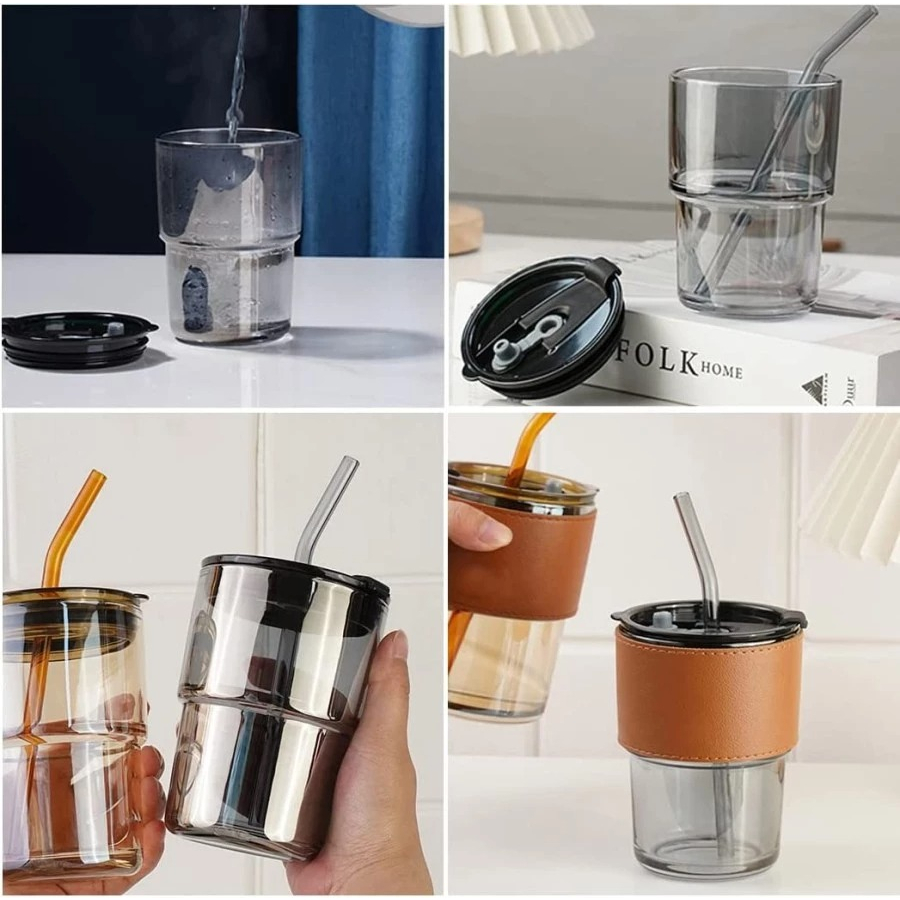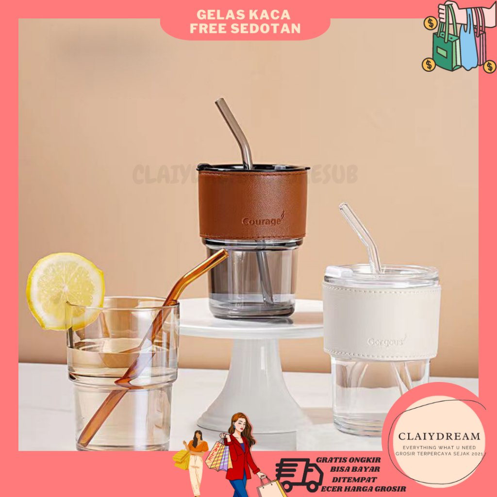 CLAIYDREAM GELAS KACA TUMBLER AESTHETIC GELAS + SEDOTAN MINUM KACA TRANSPARAN