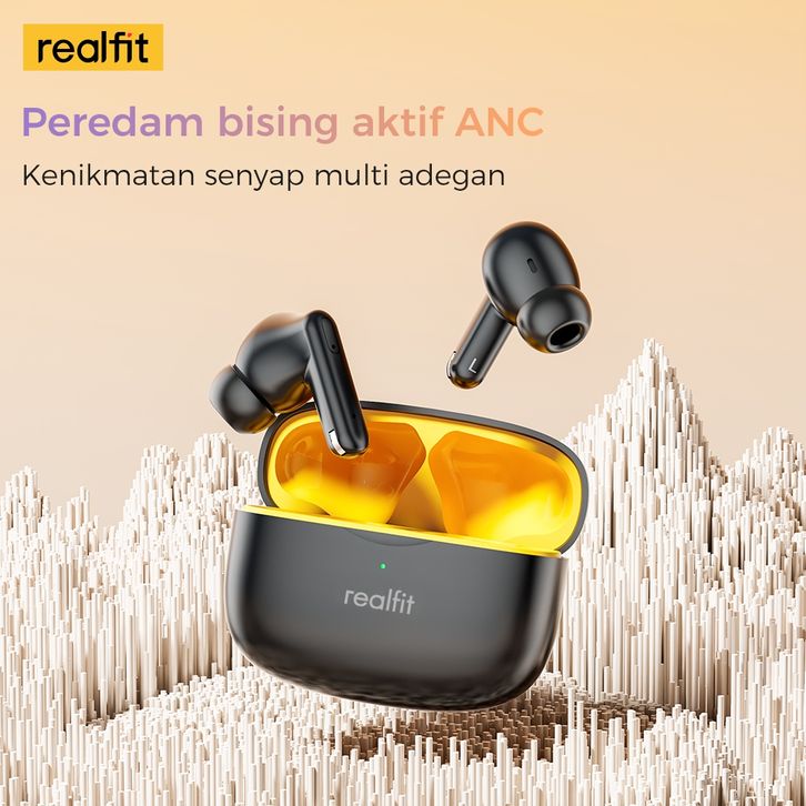 Realfit F3 – TWS Bluetooth Earphone ANC -38dB | Noise Cancelling Earbuds dengan Mic & Suara Jernih