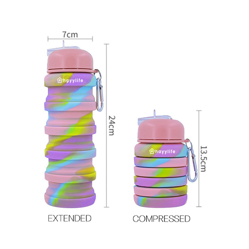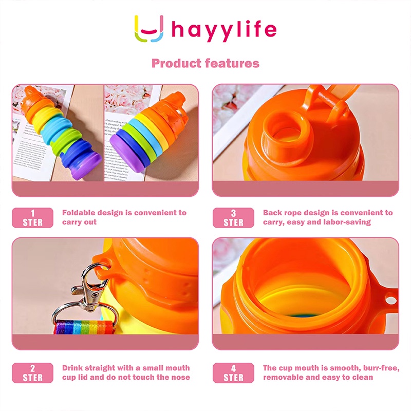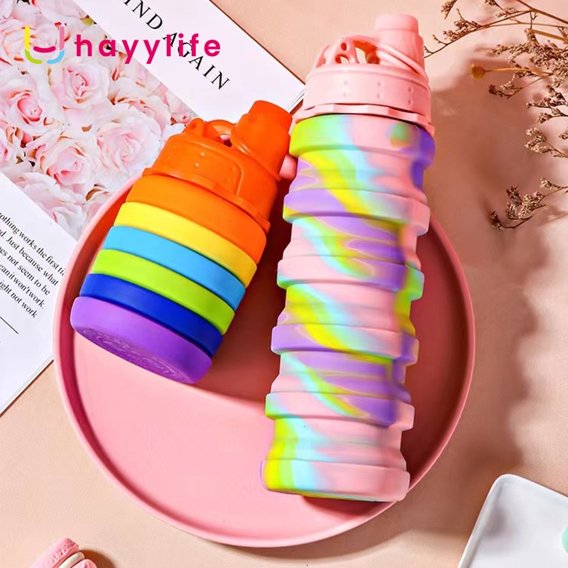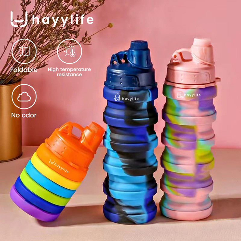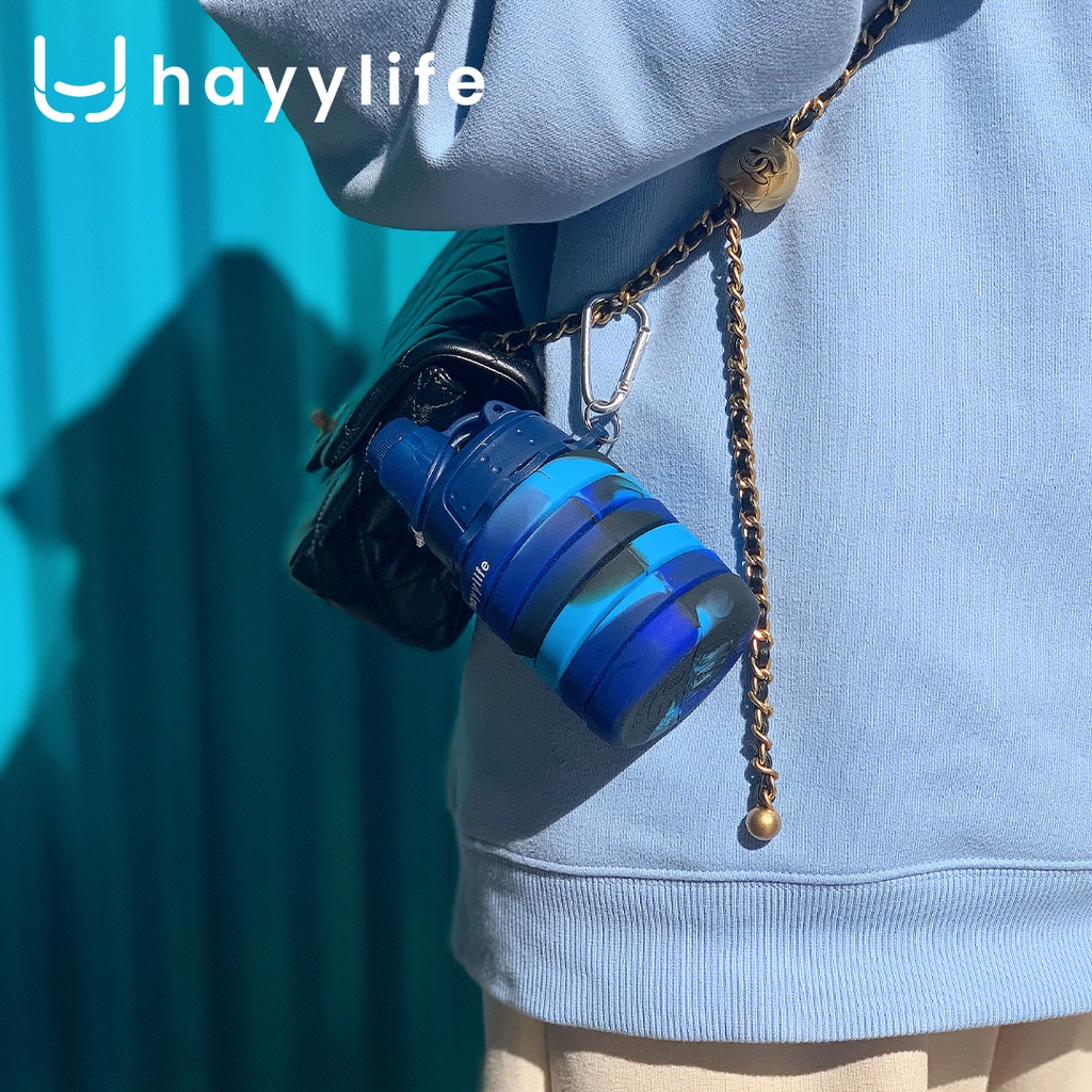 HAYYLIFE Botol Minum Lipat Silicone Botol Minum Anak Isi 500ml Dengan Hook BPA Free HL-AAB562