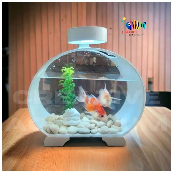 Aquarium ikan Cupang Soliter Akrilik Aquarium mini lengkap dengan batu bunga hias plus lampu LED 5 WATT